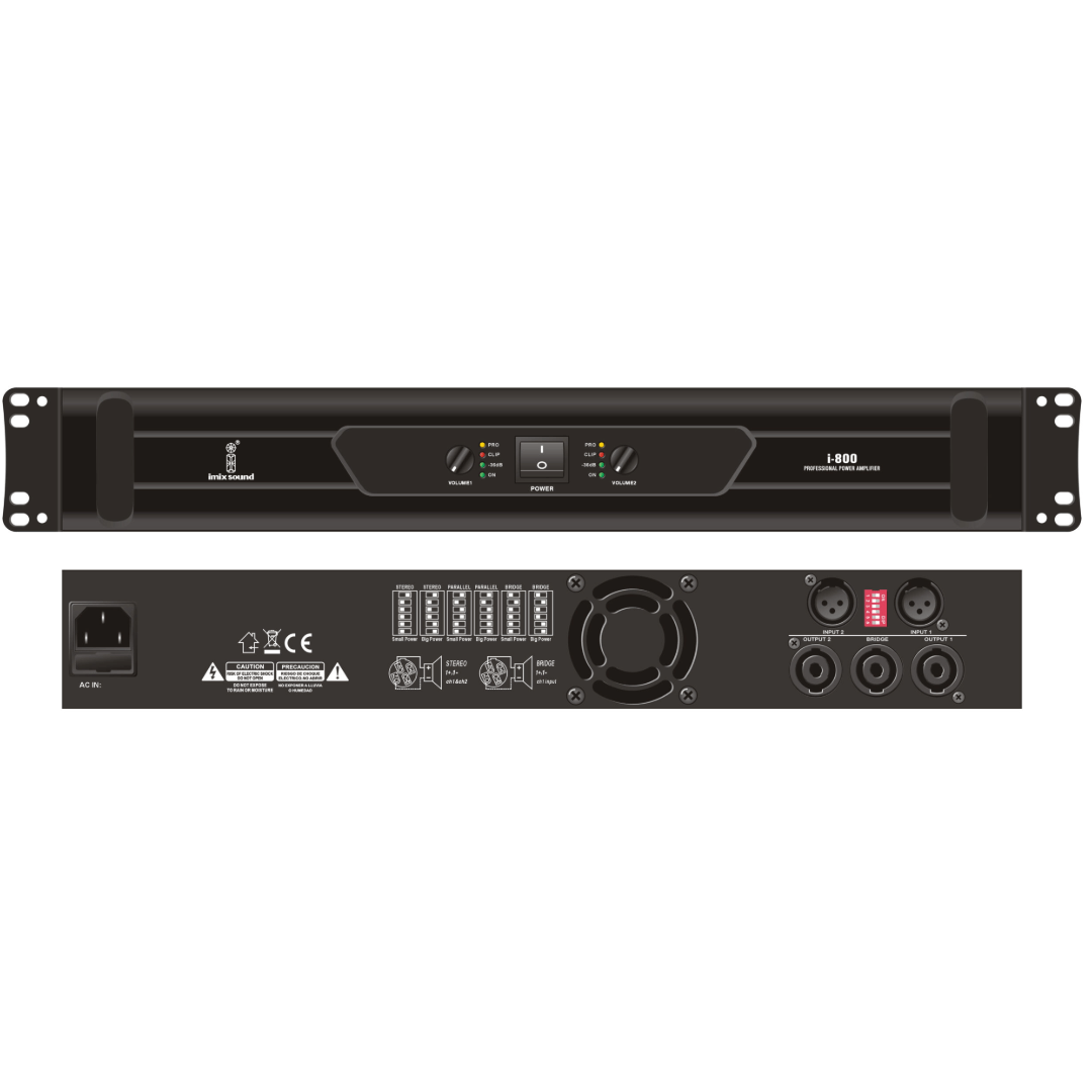 • The Imix I-800 Power Amplifier is a high-performance 2-channel power amplifier designed for superior energy efficiency, reducing heat output while delivering exceptional audio clarity.