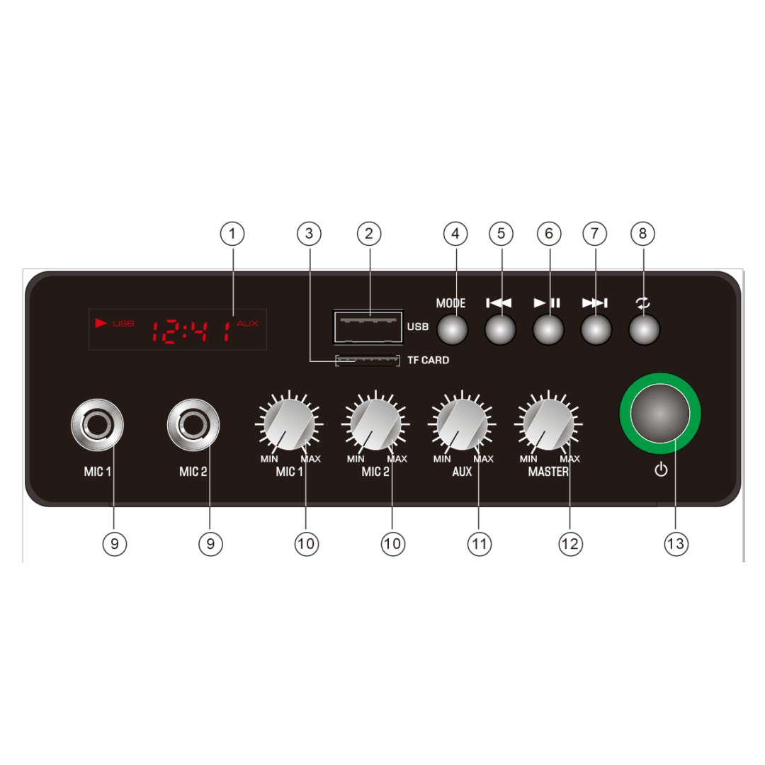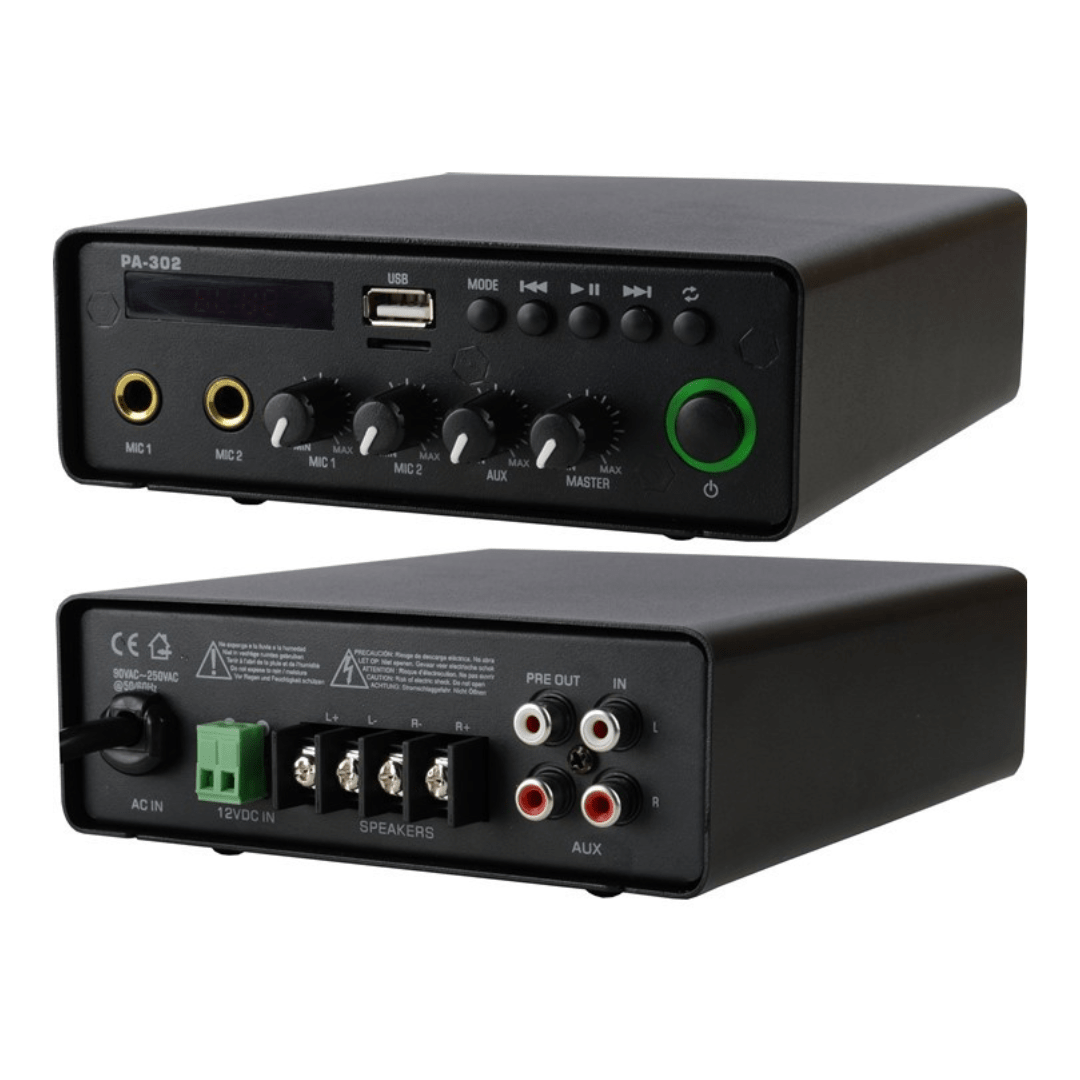 Kentech PA302MBT PA Amplifier 30W 12VDC & 220V Mains with USB/SD Card