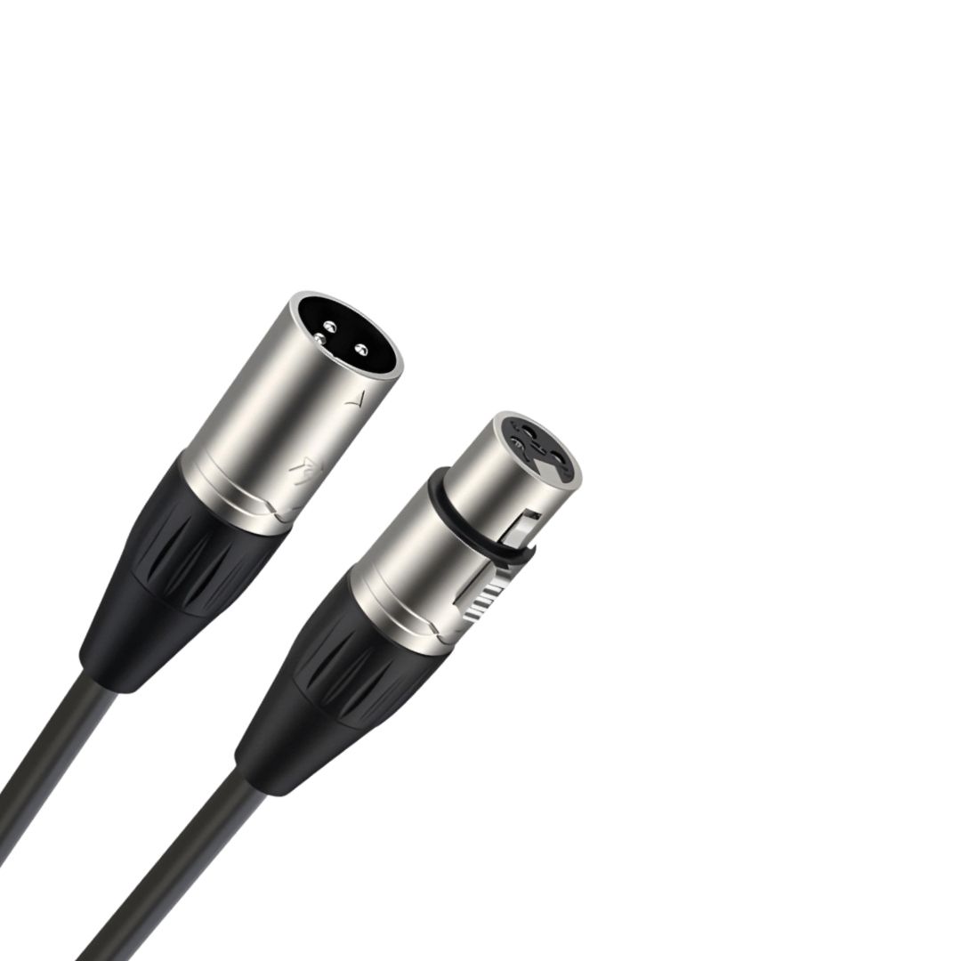 The 5-meter cable is terminated with XLR plugs (XLR female -> XLR male) , which ensures a reliable connection between the microphone and a mixer or other audio device.