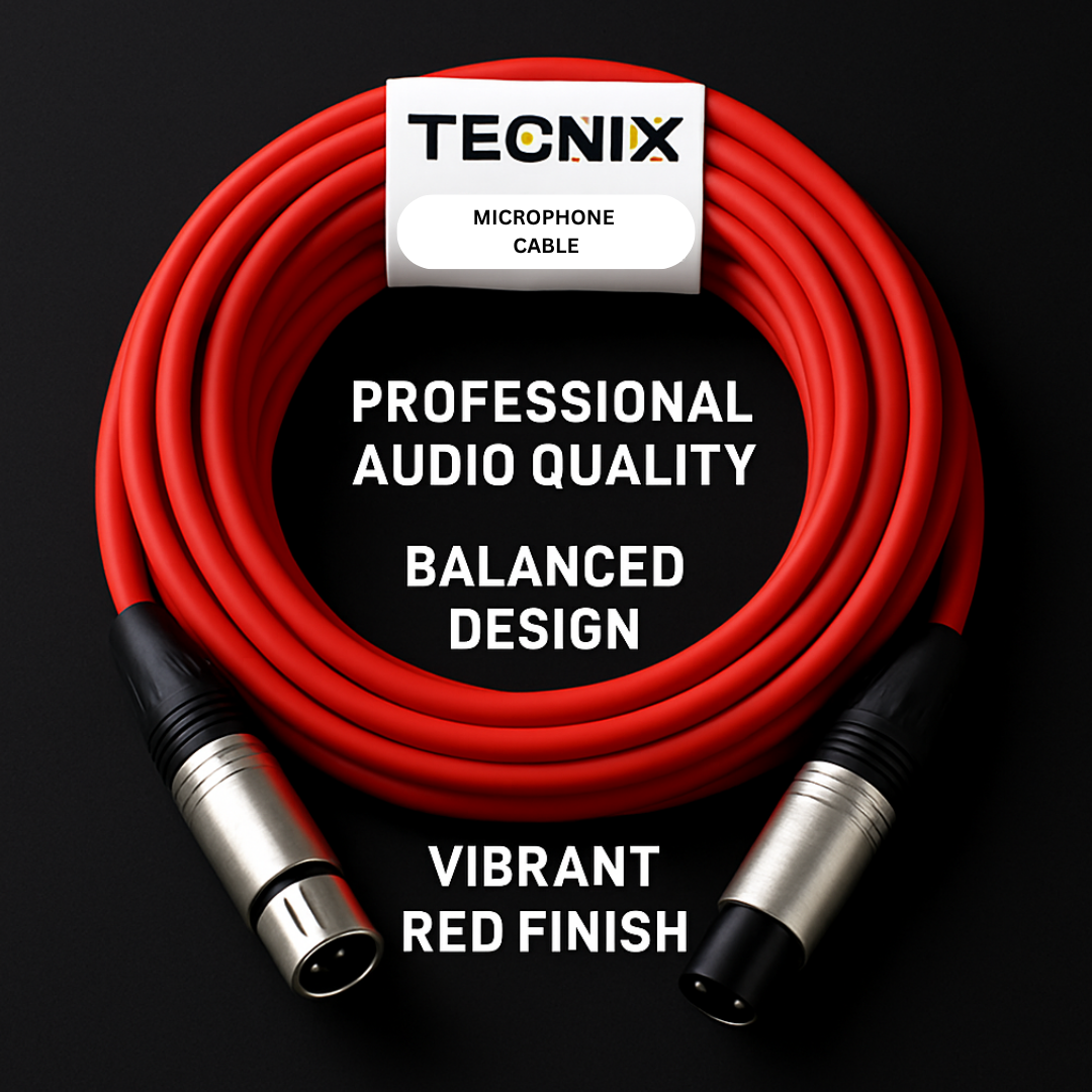 • The Tecnix 5m XLR-XLR Microphone Cable (Red) delivers outstanding performance, reliability, and clarity for both studio and live environments.