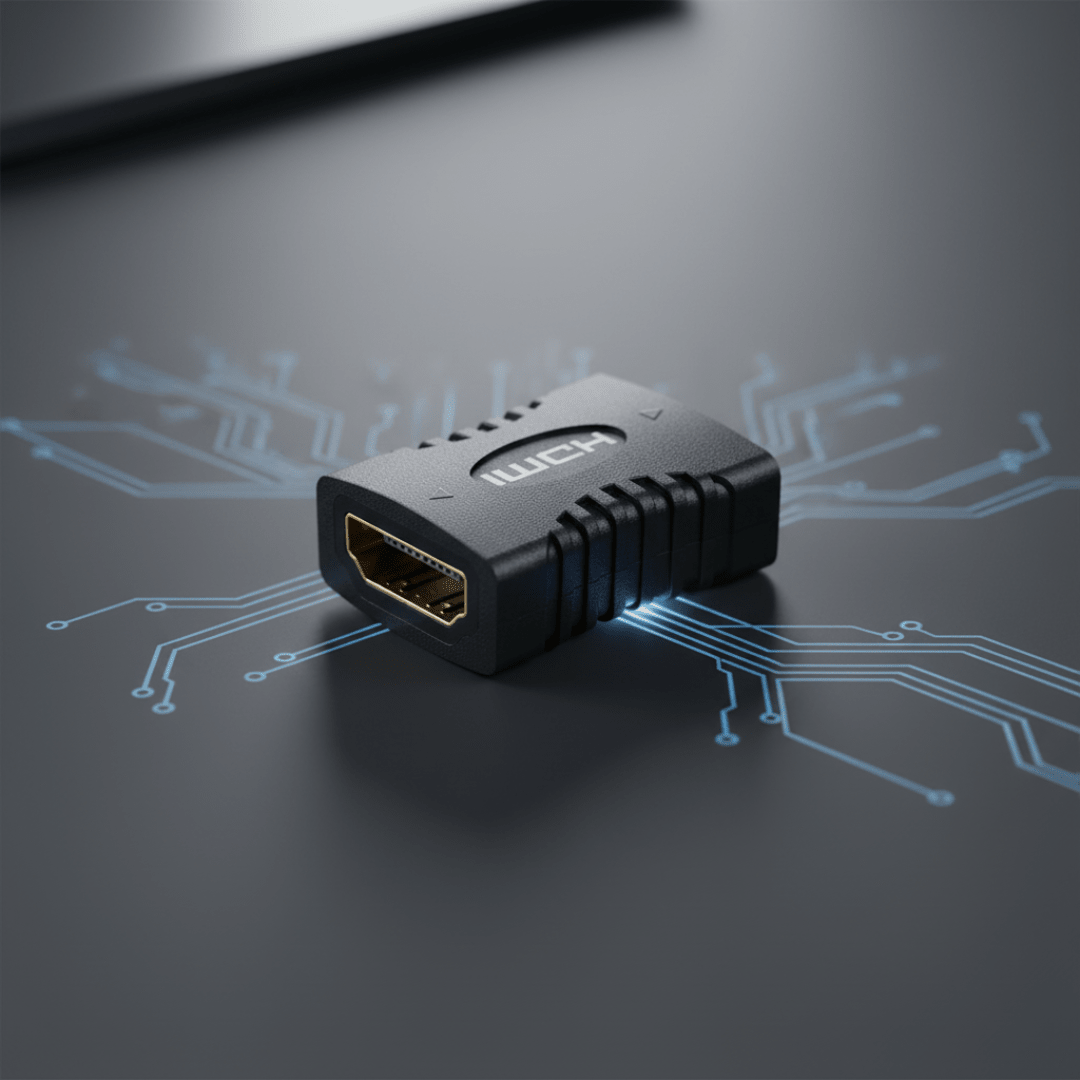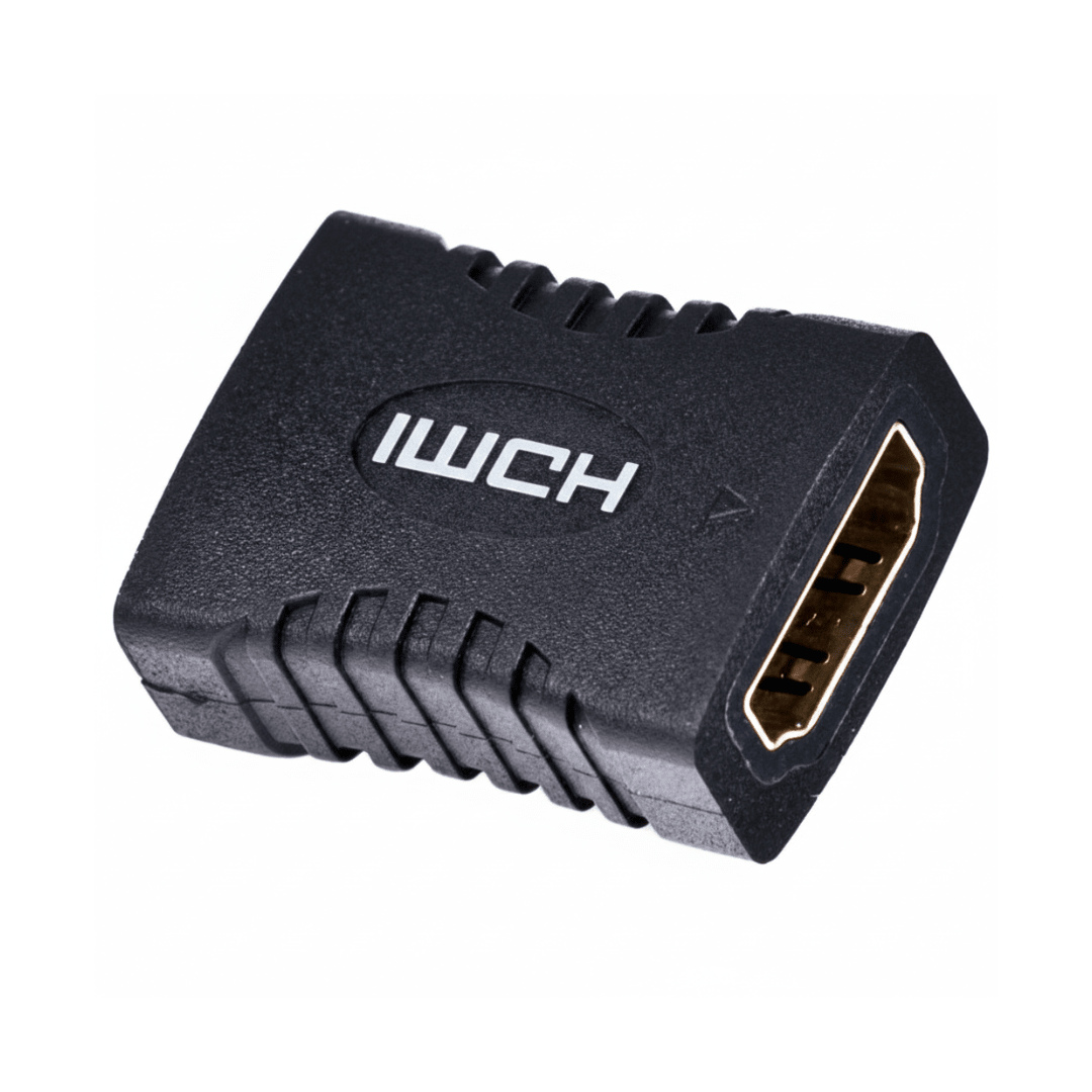 The HDMI Female to Female Adapter (001-HDM-ADFF) is a compact and efficient "gender changer" designed to link two existing HDMI male cables together.