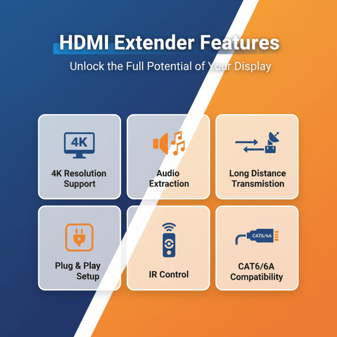 High-Definition Extension: Extends 1080p @ 60Hz signals up to 55 meters via a single CAT5e/6 cable without signal loss.