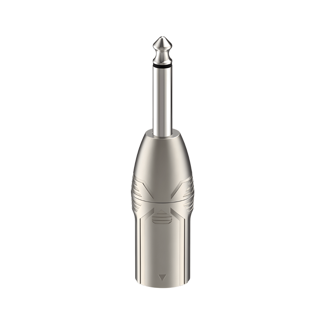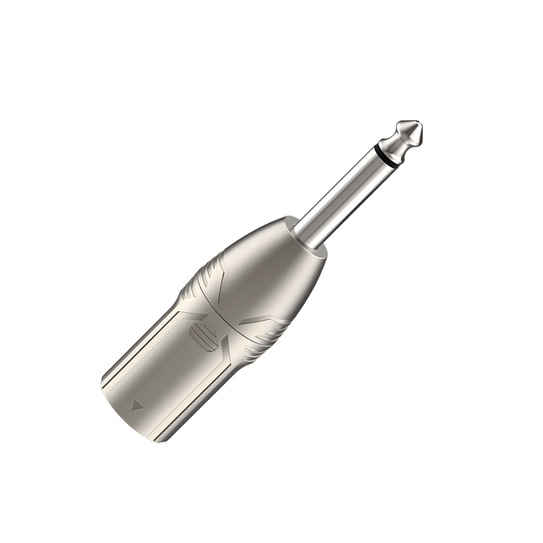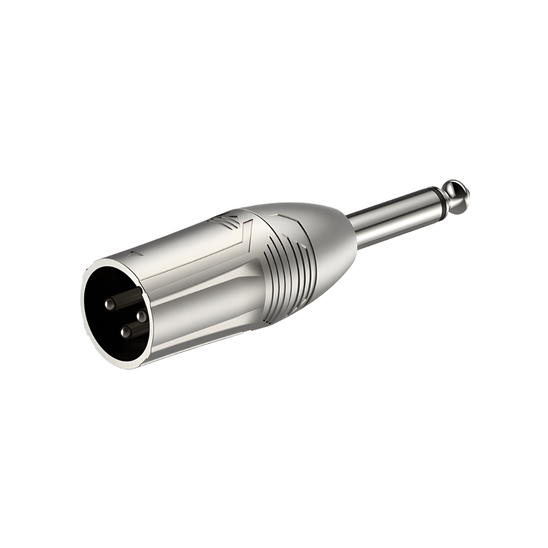 Converts 6.35mm (¼”) mono jack plug to XLR male (3-pin)
