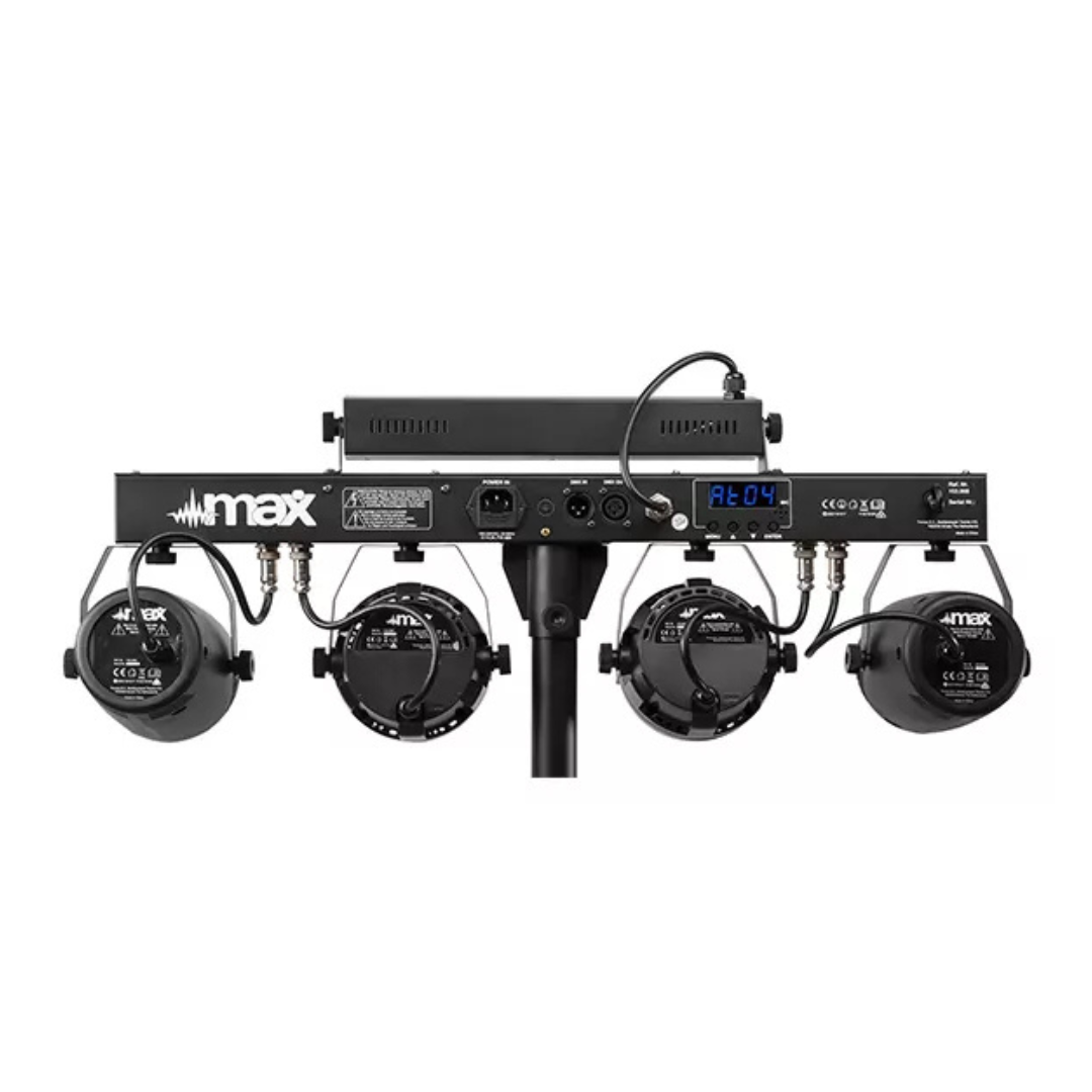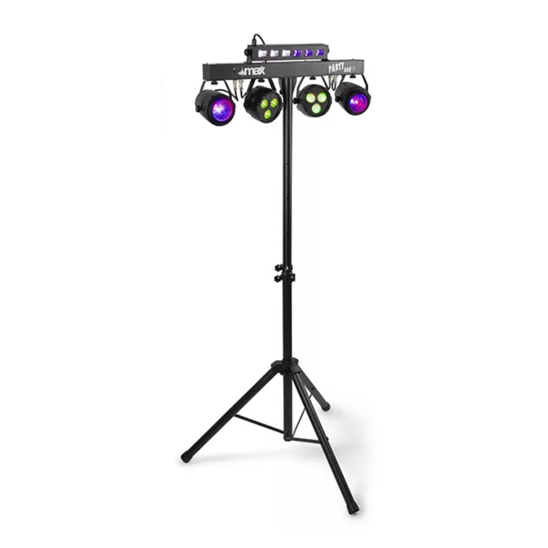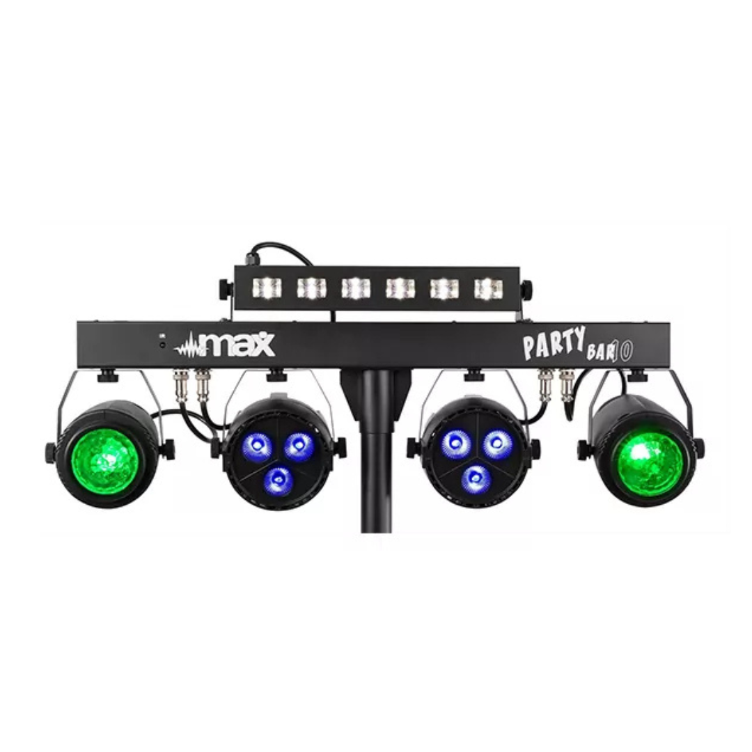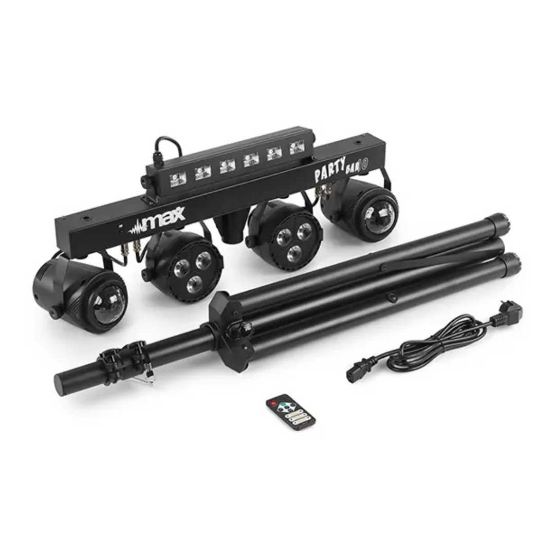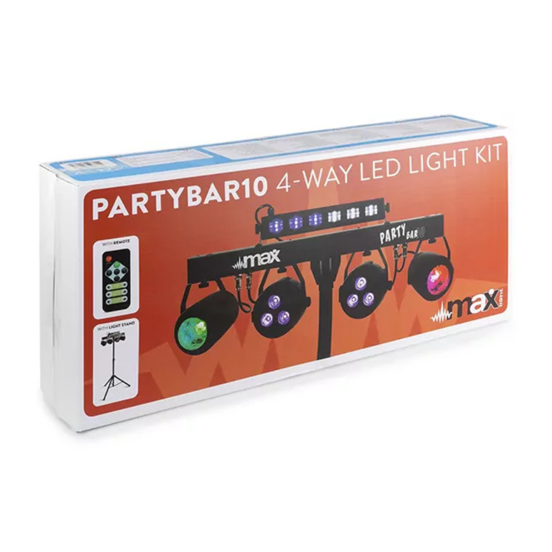 The Beamz MAX PartyBar 10 Set is a complete LED lighting kit designed for stages, parties, and special events. Featuring high-intensity, multi-colour LEDs, the kit is plug-and-play and can be operated via DMX, IR remote, or standalone programs.