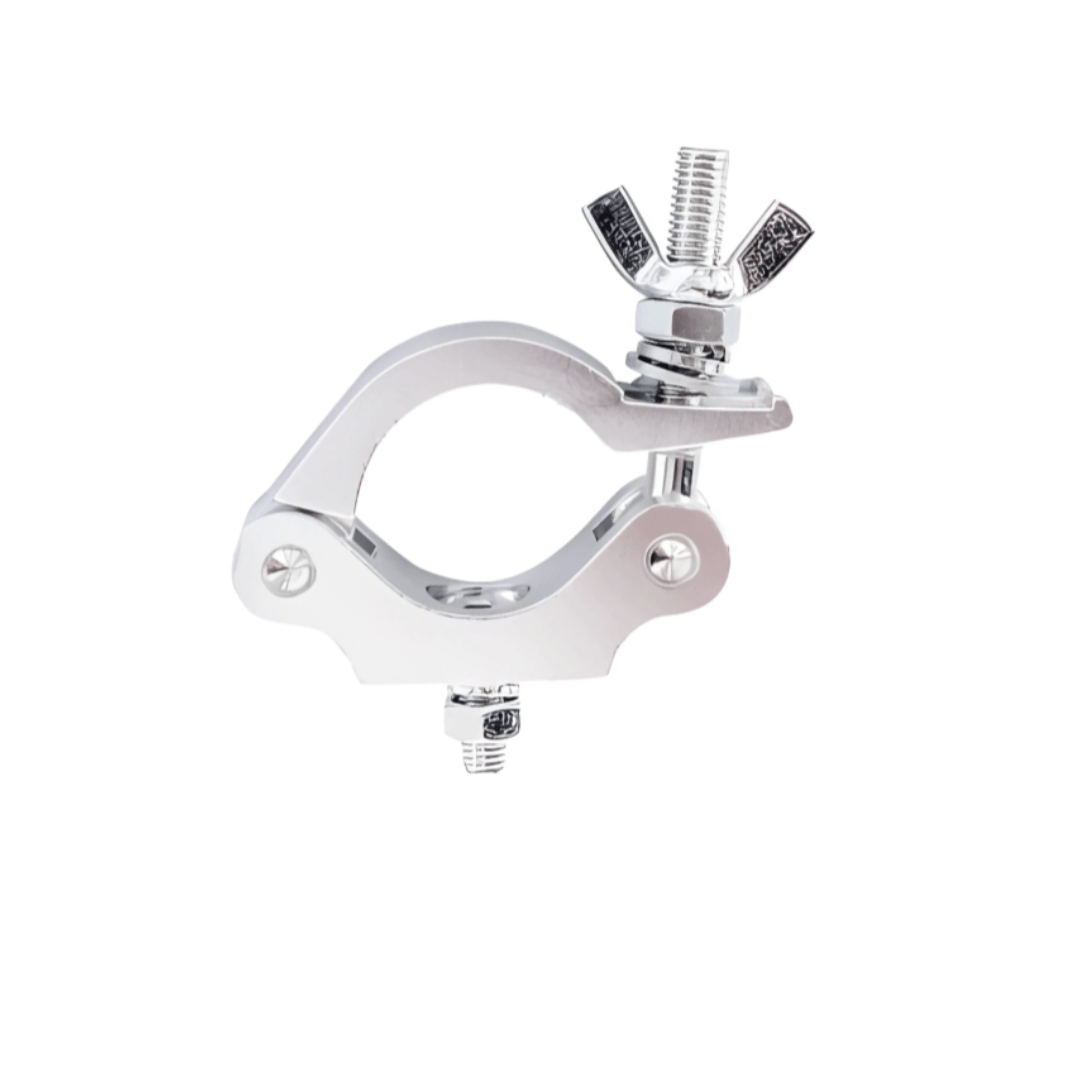 • Securing the lighting fixture onto the coupler is simple with the M10 bolt, spring washer and nut, and securing the coupler onto the 50mm truss / pole is even easier with the bolt and wing-nut foldable mechanism.