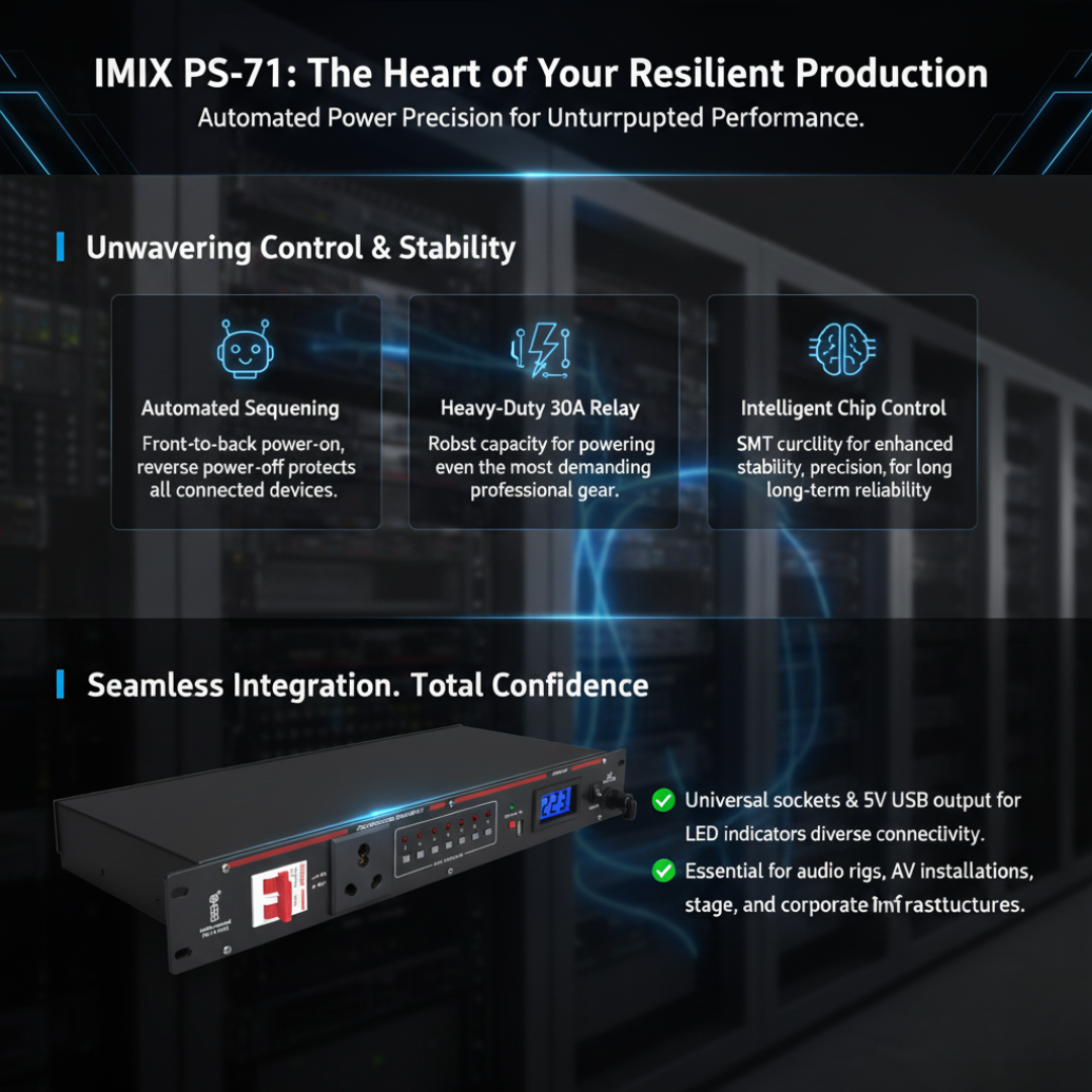 Drive operational stability with the IMIX PS-71, a forward-thinking power sequencing controller engineered to streamline how your mission-critical audio, visual, and stage technologies come online.