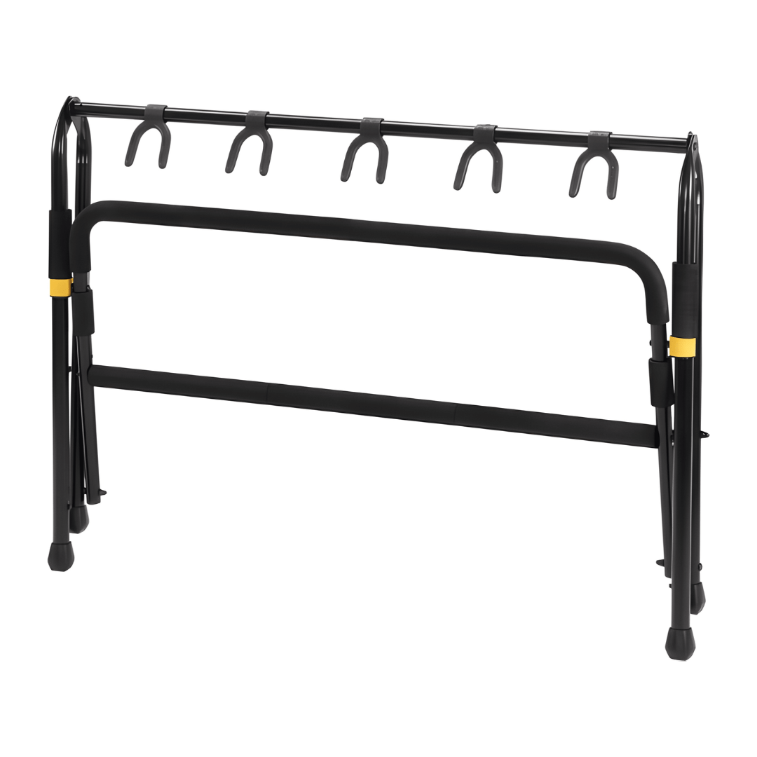 The HERCULES Multi-Guitar Rack GS525B accommodates five guitars with Specially Formulated Foam (SFF) padding covering all contact points. Expands with HA205 and will accommodate up to 10 guitars.