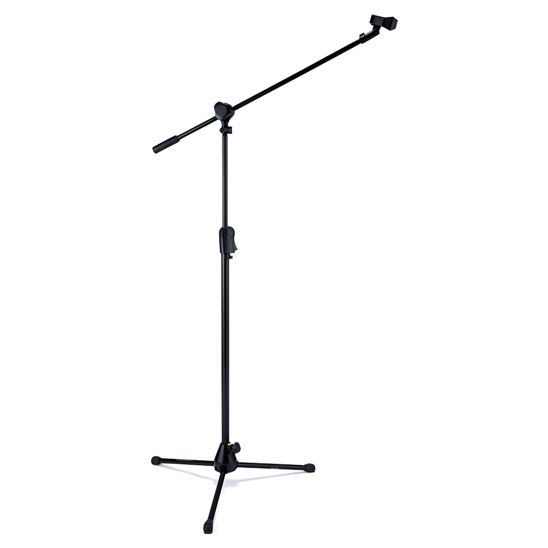 The HERCULES Tripod Base Boom Mic stand MS532B features the EZ Mic Clip, the 2-in-1 Boom Clamp, and the EZ Clutch