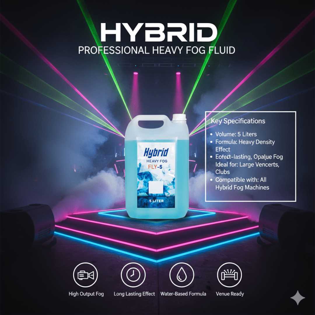 When paired with a HYBRID HLF1500 or HYBRID HLF1200, Hybrid FLY-5 can be used to create extremely dense carpets of fog that hug the ground.