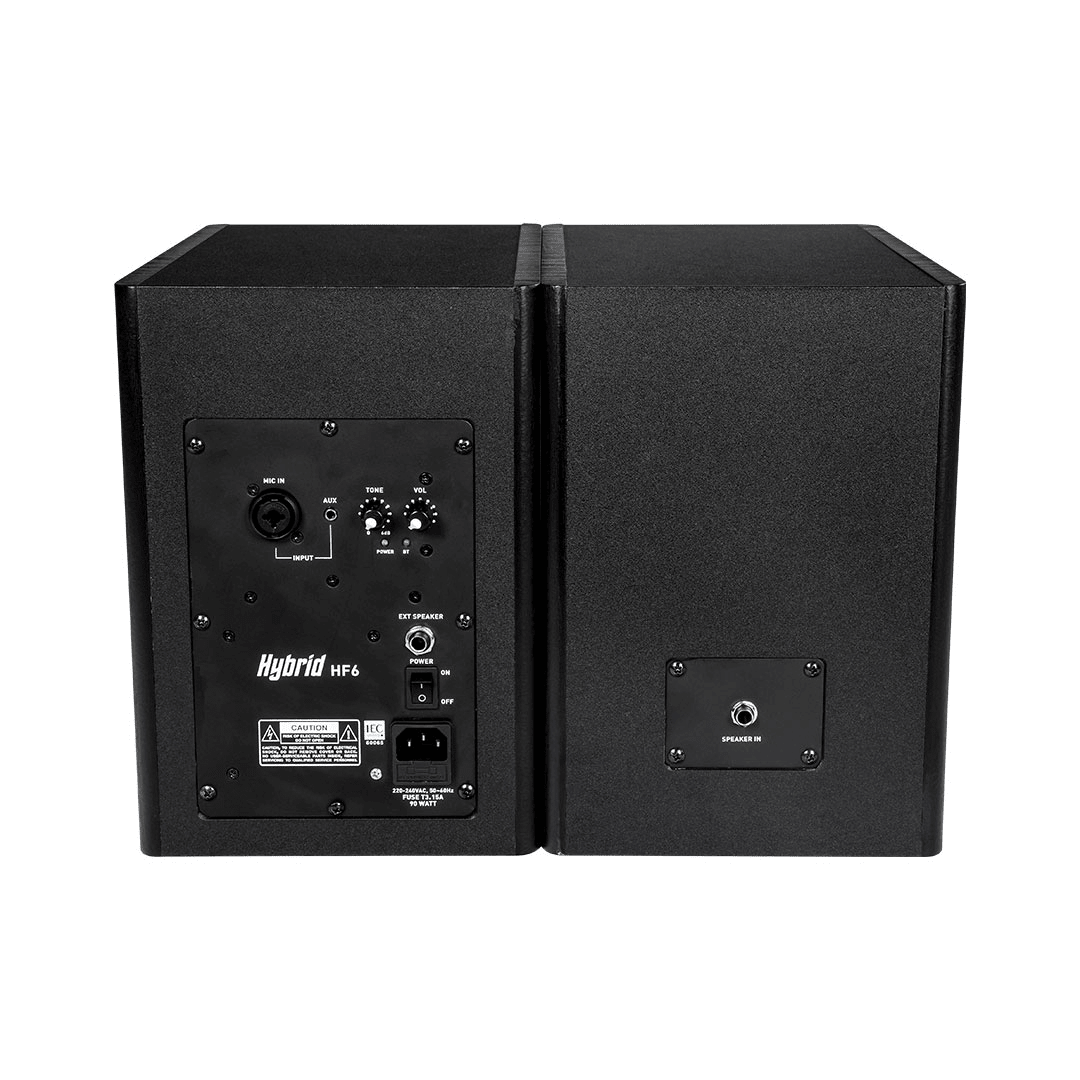 • The Hybrid HF6 set comprises of two cabinets, an active and passive 6.5″, manufactured from wood and finished off in a stylish black veneer.