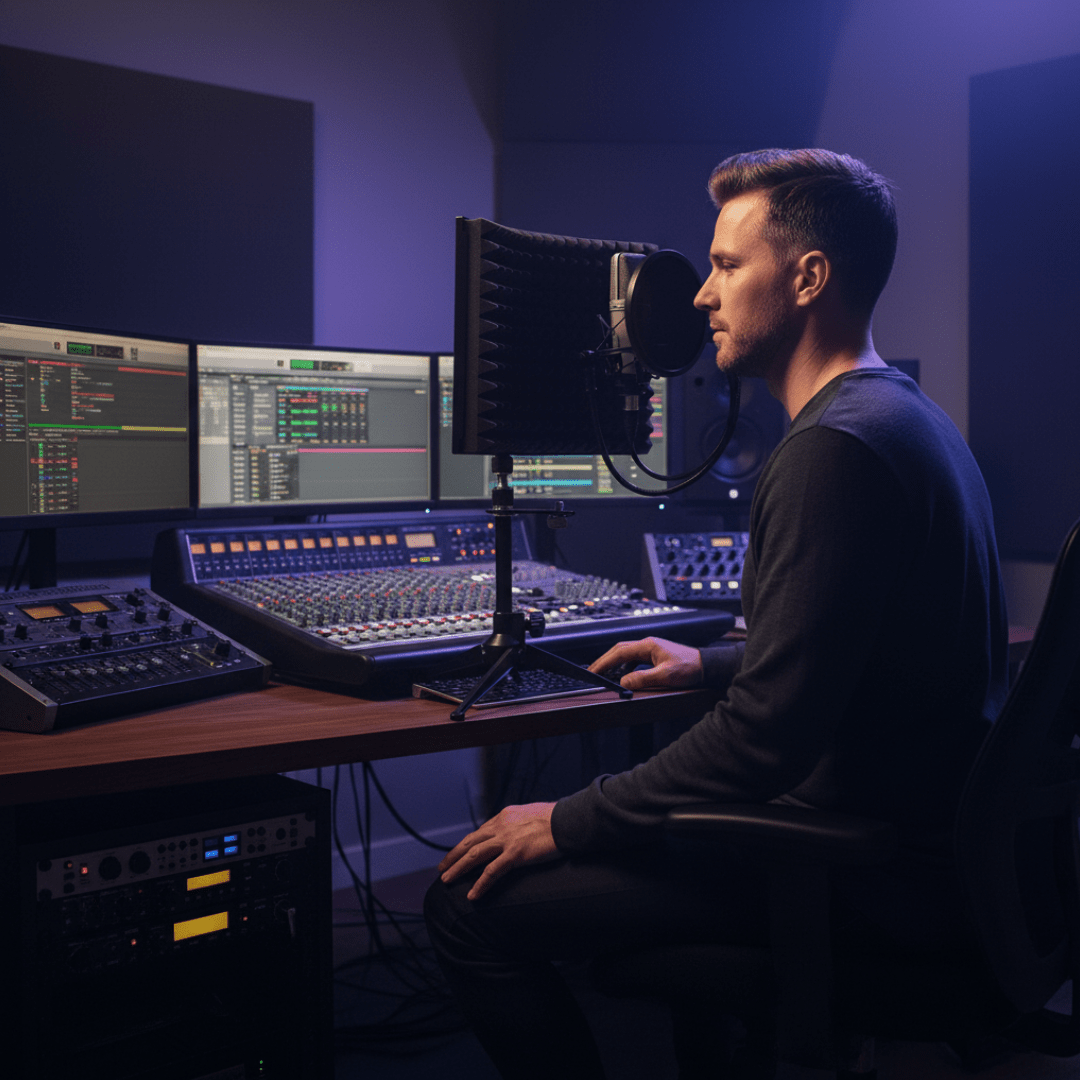 The Hybrid MIS02 MKII is a mid-sized, 430 x 310mm microphone isolation shield suitable for professional studio productions.