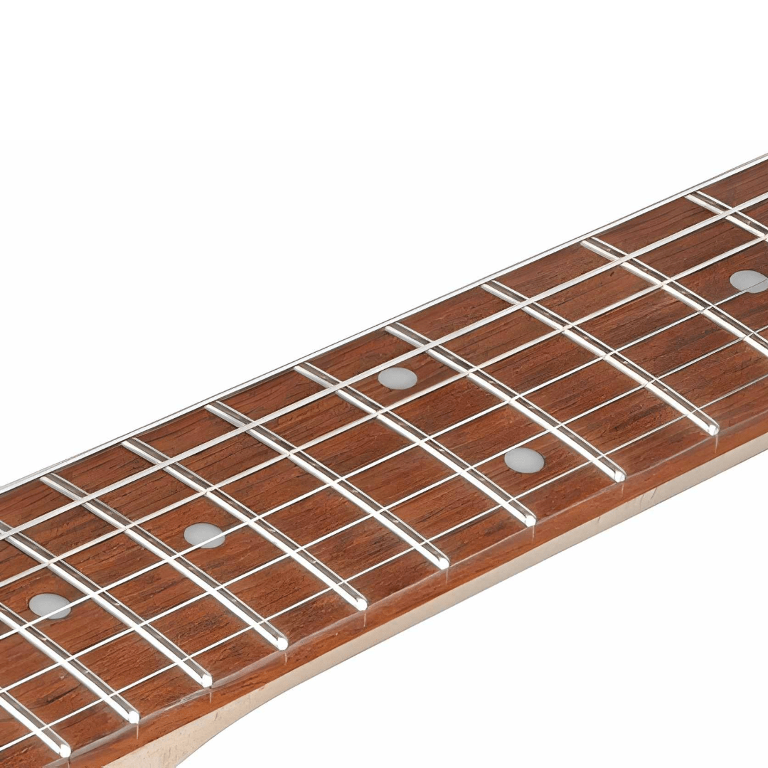 The 250mm fretboard radius is not too flat, not too round, and makes for an excellent choice for the first-time player. This radius is a great middle ground that allows for learning to play each note correctly, while still maintaining a high degree of comfort