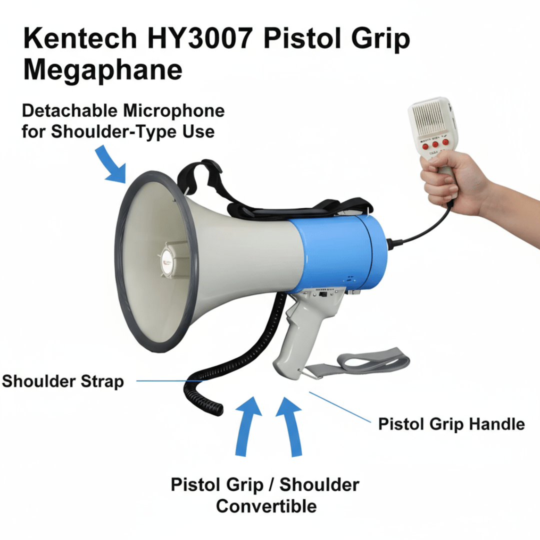 Kentech HY3007WB 25W Pistol Grip Megaphone with loose microphone siren