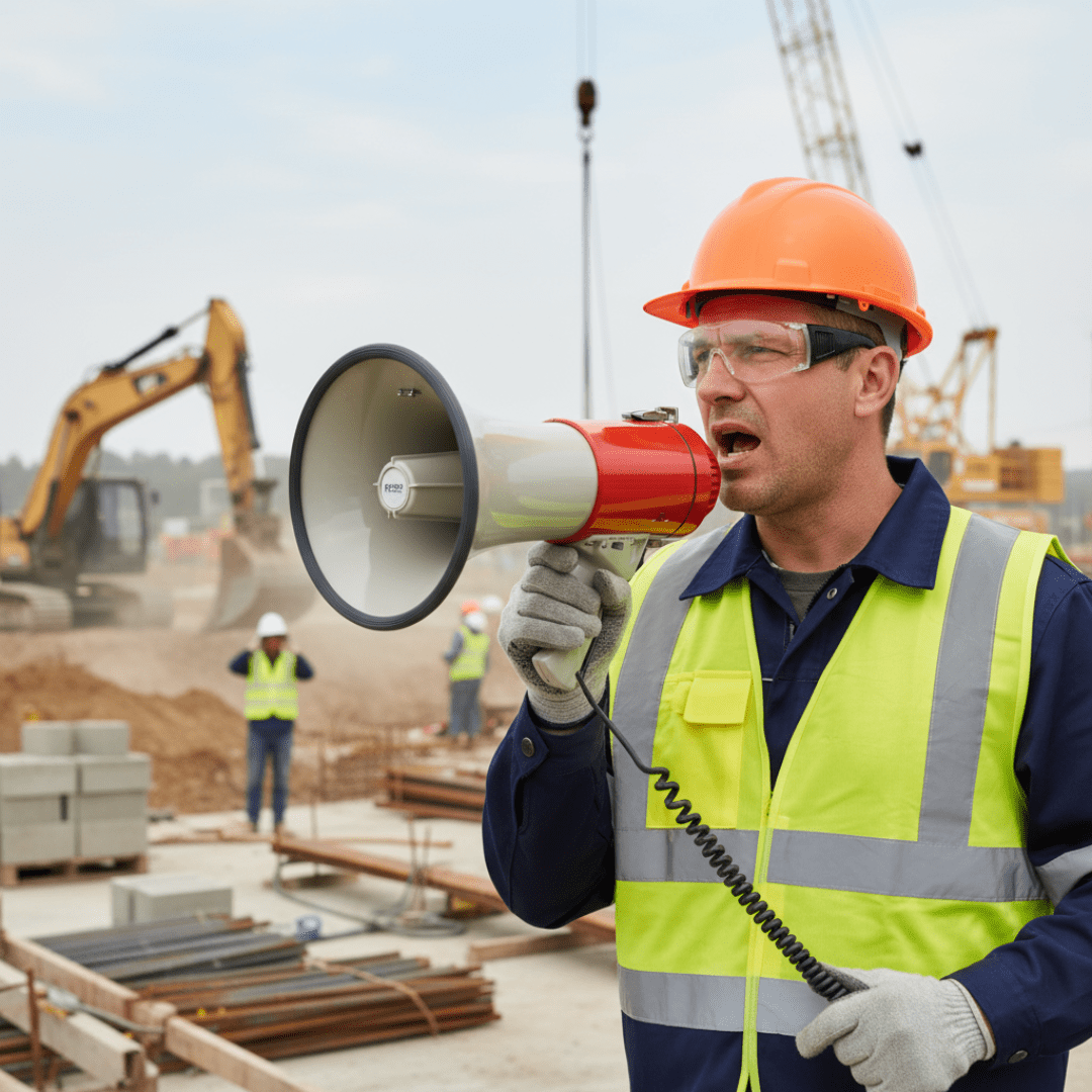 • The megaphone is ideal for the use at events, in swimming halls and on building sites