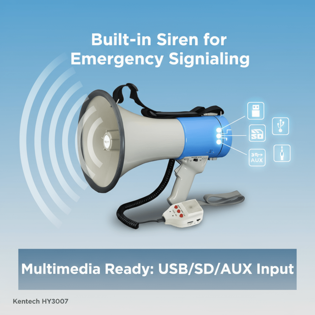 Kentech Megaphone HY3007MB 12V 25W Pistol Grip with USB & SD Card