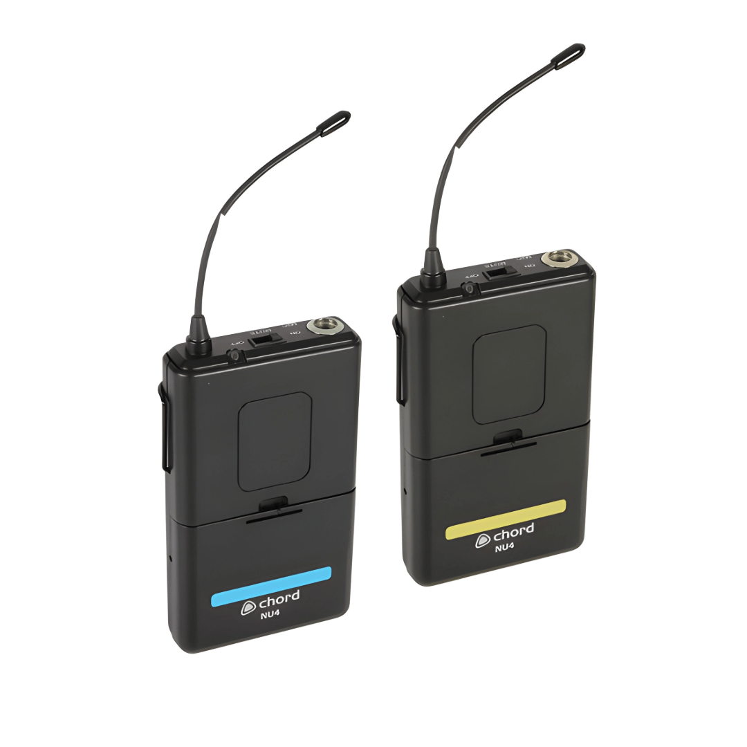 • 2x Beltpack transmitters (with neckband and lavalier mics)