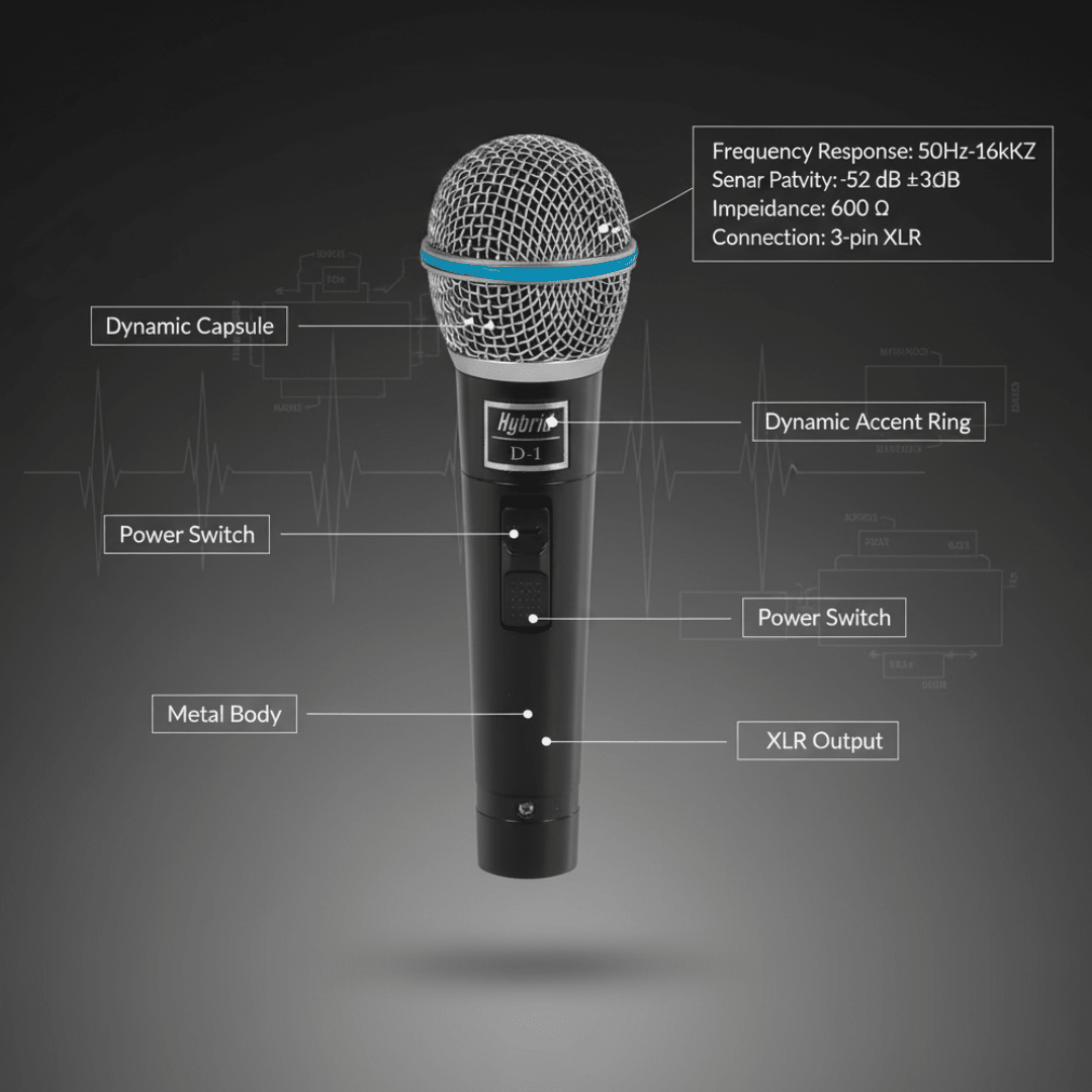 The Hybrid D-1 are unidirectional, cardioid, dynamic microphones suitable for vocals in live performances or studio recording.
