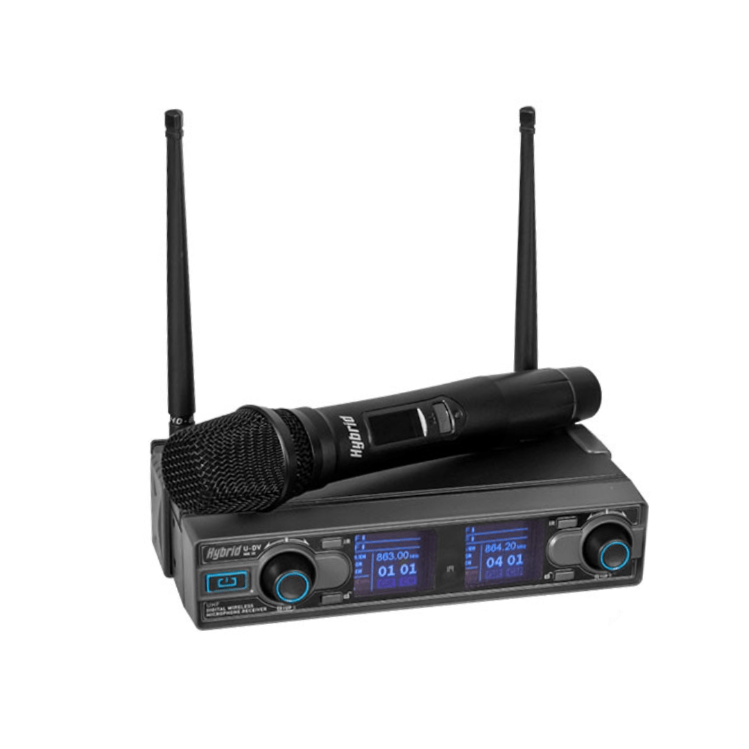 • The Hybrid U-DV MKIII is a variable channel, UHF, dual handheld + headset transmitter-receiver microphone system with excellent features.