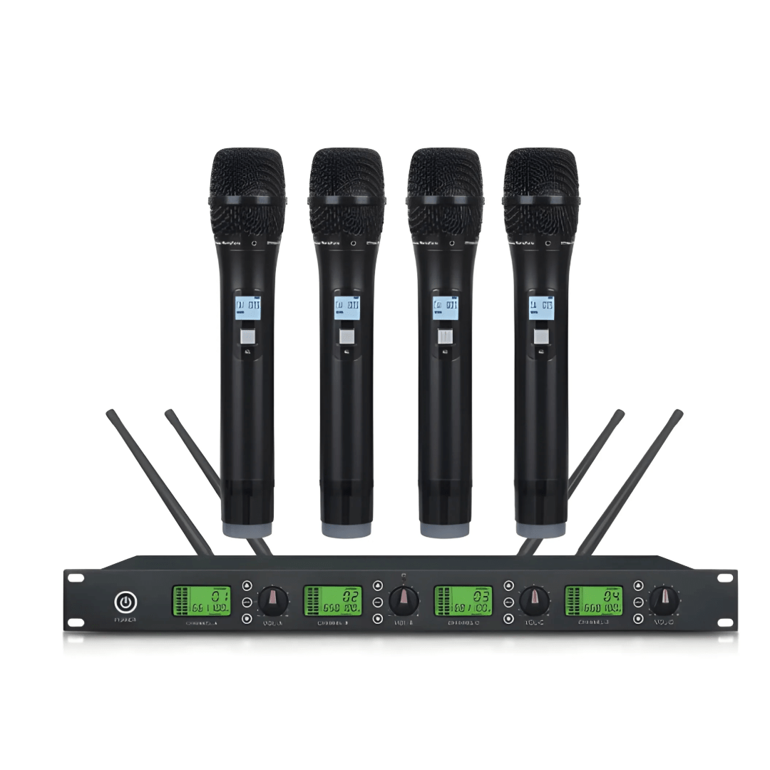 The Imix K-9004 4-Channel Wireless Microphone System is a professional audio solution designed for events, performances, and group presentations requiring multiple wireless microphones.
