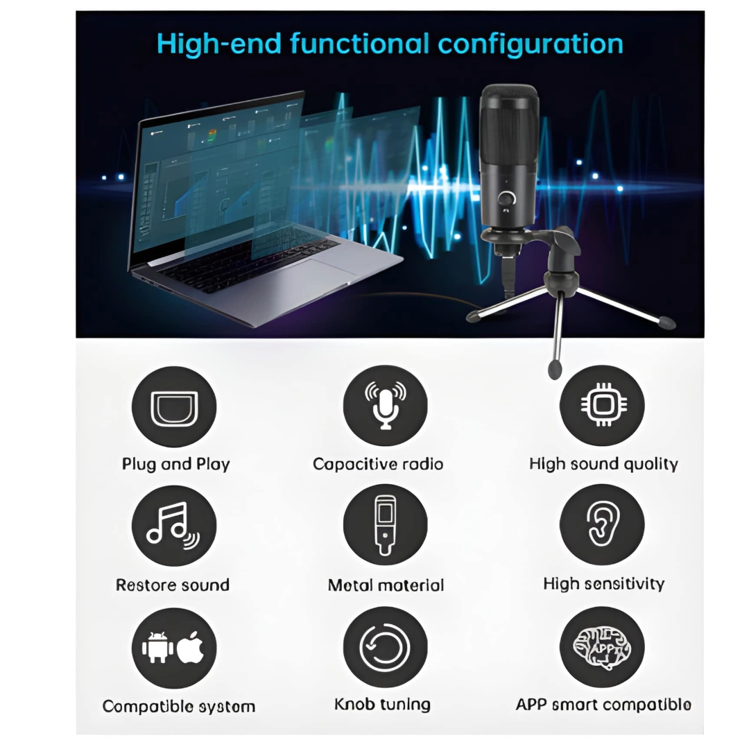 The T-USB Microphone for Computer, Professional Studio Cardioid Condenser Mic Kit Compatible with Mac PC Laptop for Skype YouTube Teaching, Gaming, Recording