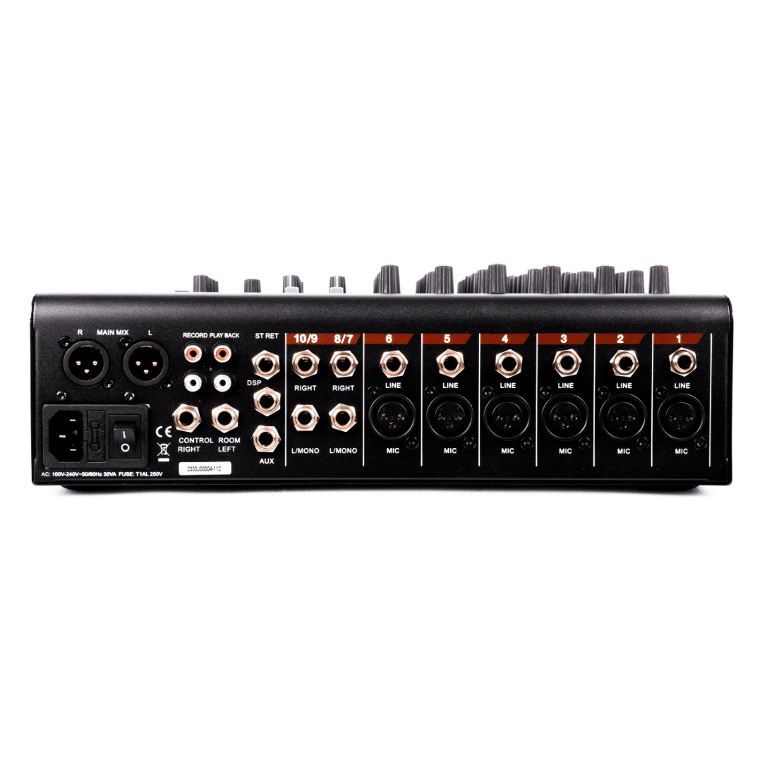 • 8‑channel analog mixer layout with support for up to 10 sources