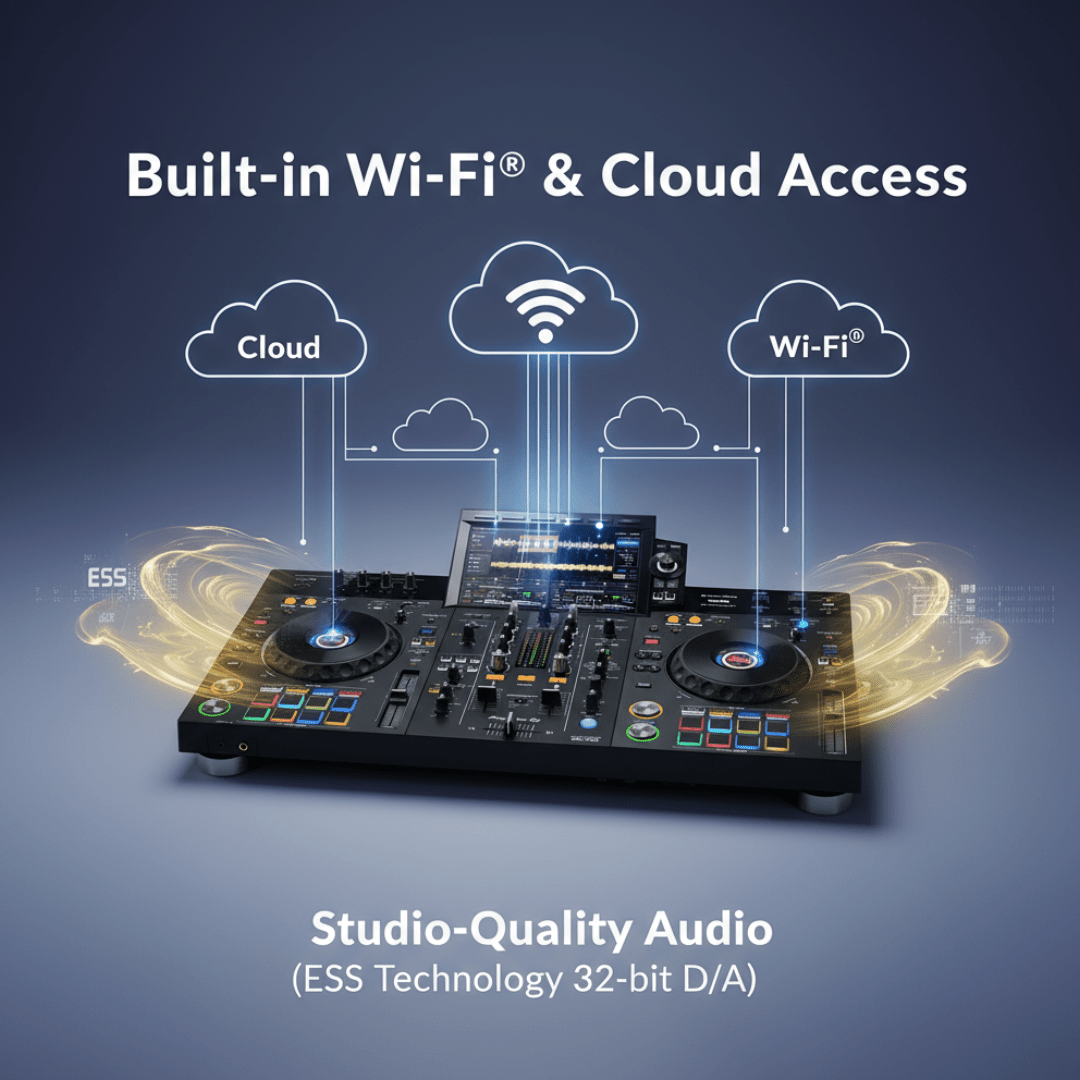Built-in Wi-Fi® and Cloud Access: With integrated Wi-Fi® capabilities, the XDJ-AZ allows you to connect to the cloud effortlessly. Utilizing rekordbox CloudDirectPlay, you can access your cloud-based library directly from the unit. This feature provides the latest playlists and performance data without the need for external devices. You can update your Hot Cue information and prepare your sets directly on the system, ensuring a streamlined workflow.