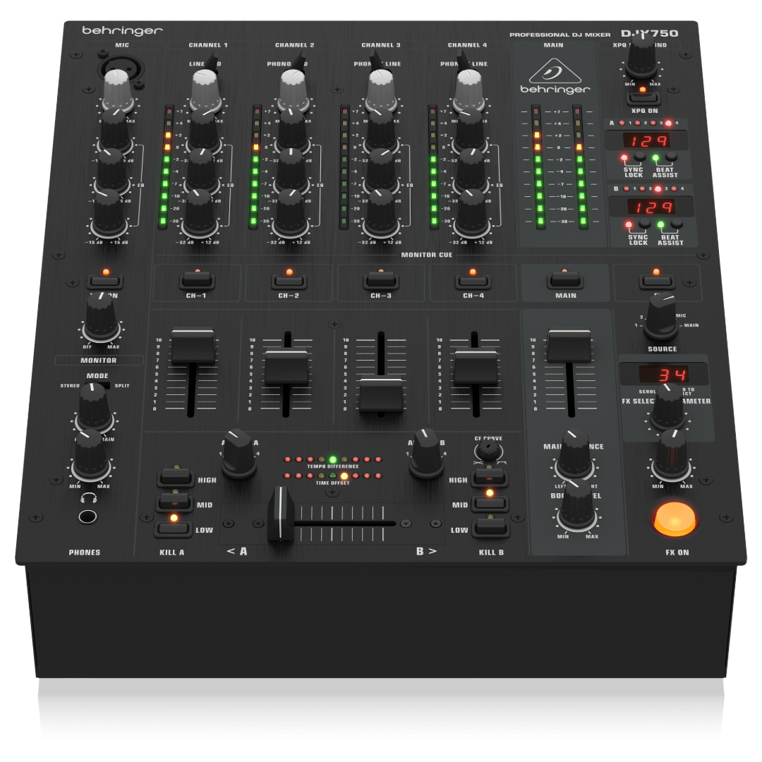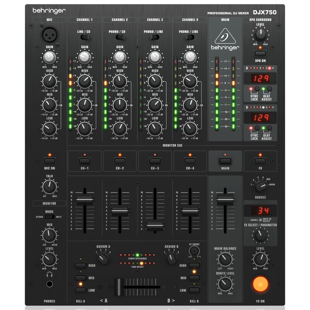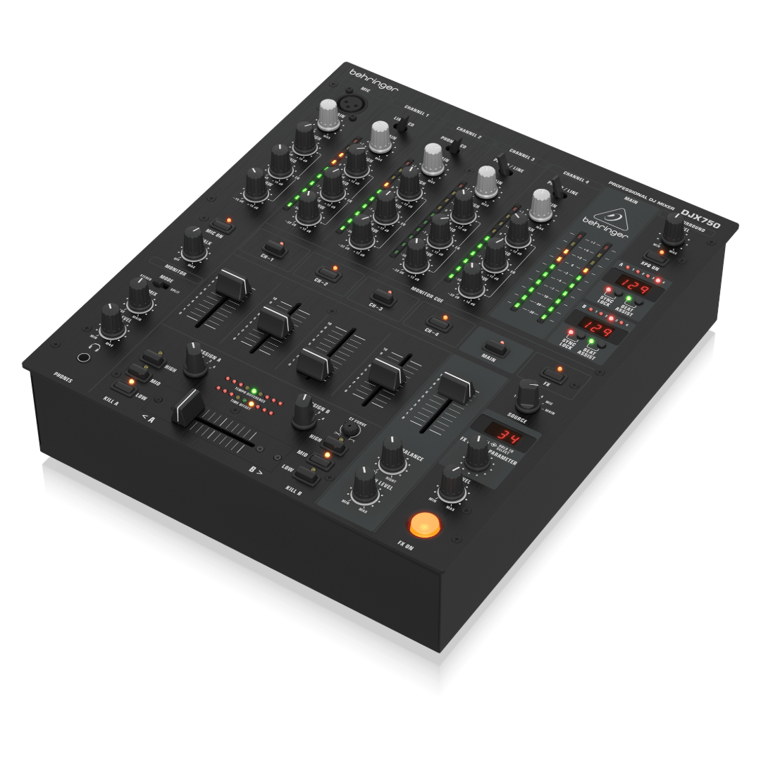 • Behringer Pro Mixer DJX750 4-channel DJ Mixer at a Glance:
