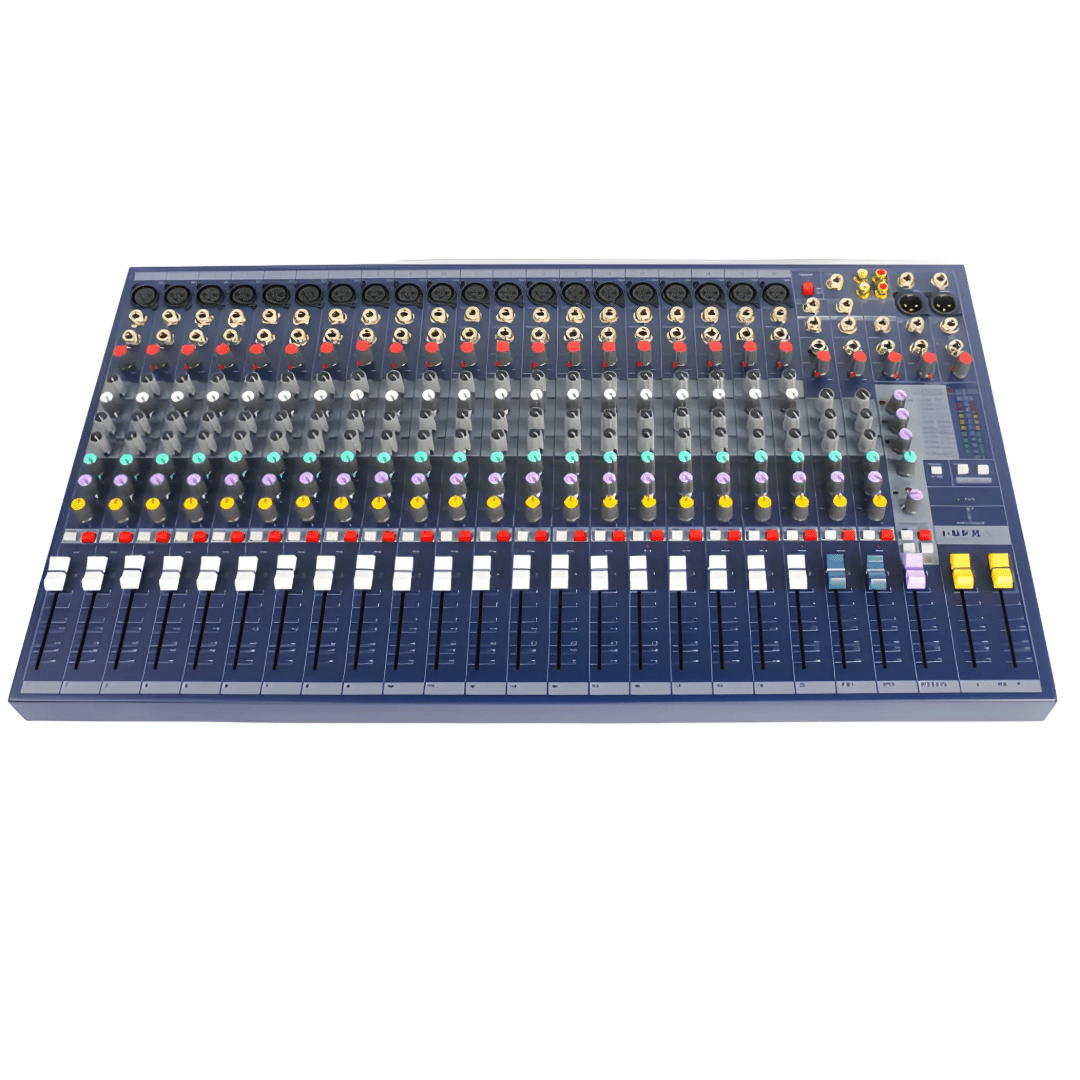 • Each channel typically includes a 4-band equalizer for precise tone shaping, and the mixer also features multiple auxiliary sends for flexible routing of monitor mixes or external devices.