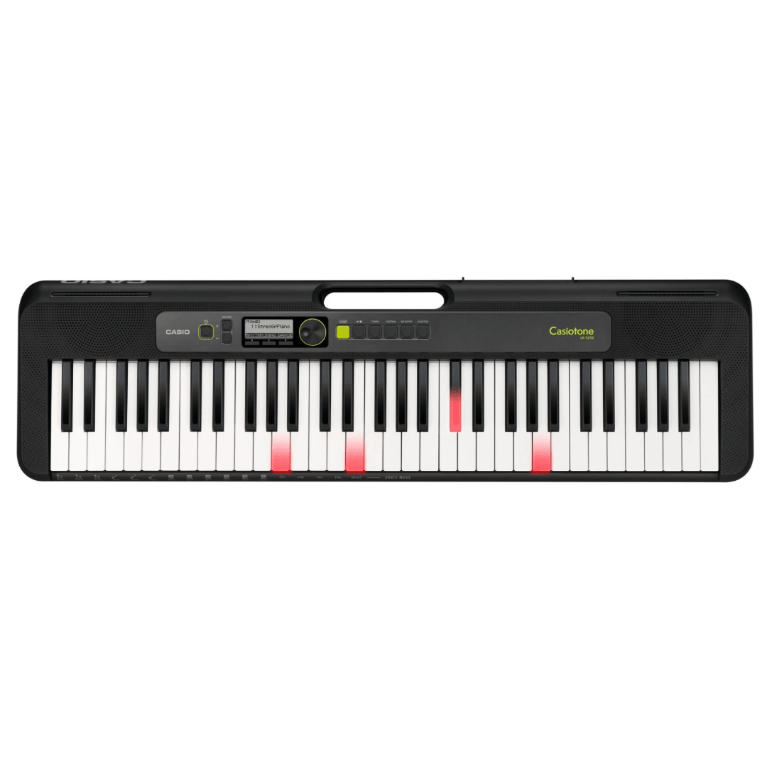 61 illuminated keys with touch response and a practical keyboard-carrying handle — perfect for making music, anywhere.
