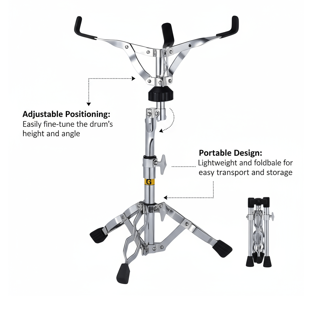 Adjustable Positioning: Easily fine-tune the drum’s height and angle for a customized setup.