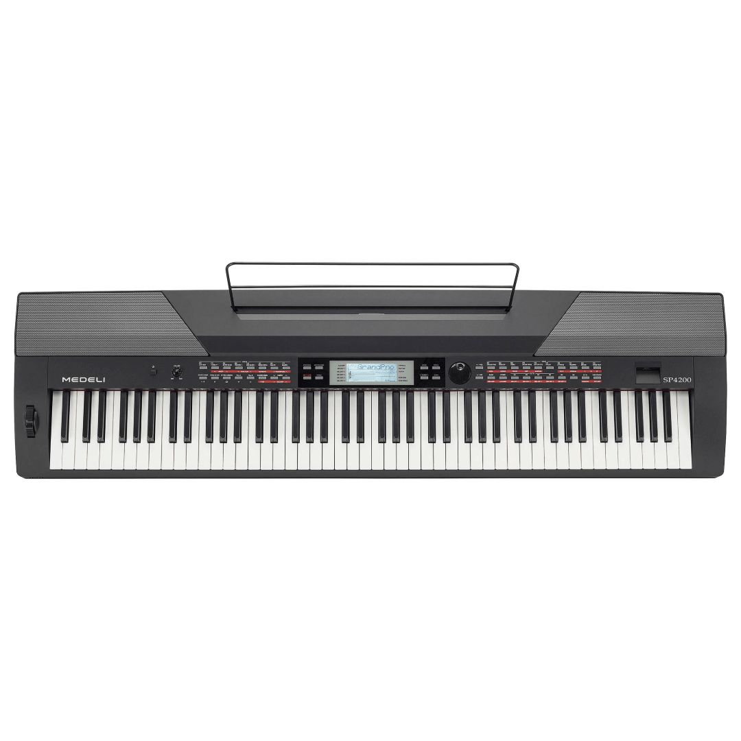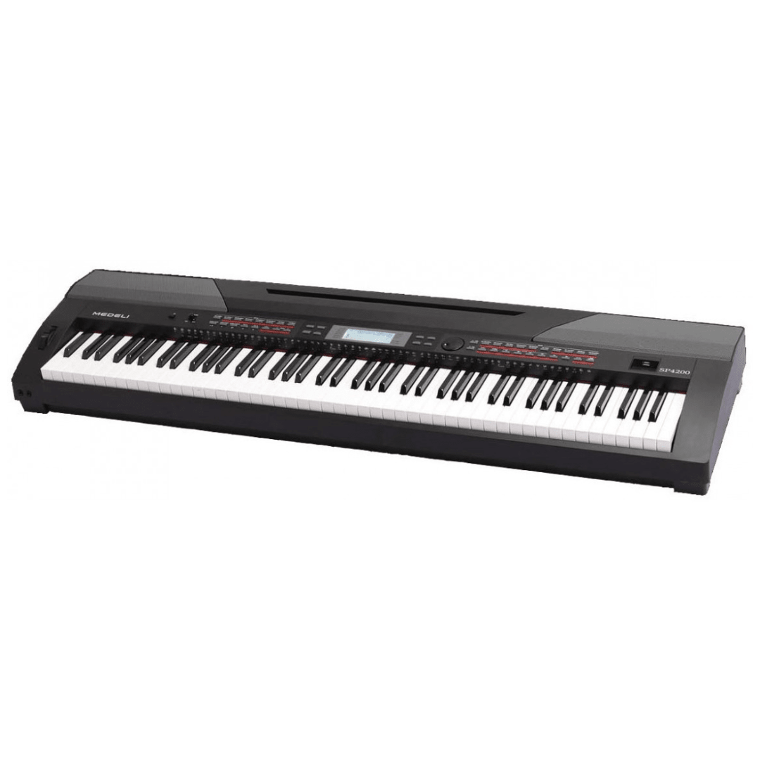 The SP4200 is a digital stage piano with accompaniment, 88 keys hammer action. It's compact size, light weight, variety of sounds and a good build quality make this piano interesting for most musicians. A complete automatic accompaniment makes this the ideal instrument for keyboard players to switch to a well-weighted piano keyboard.