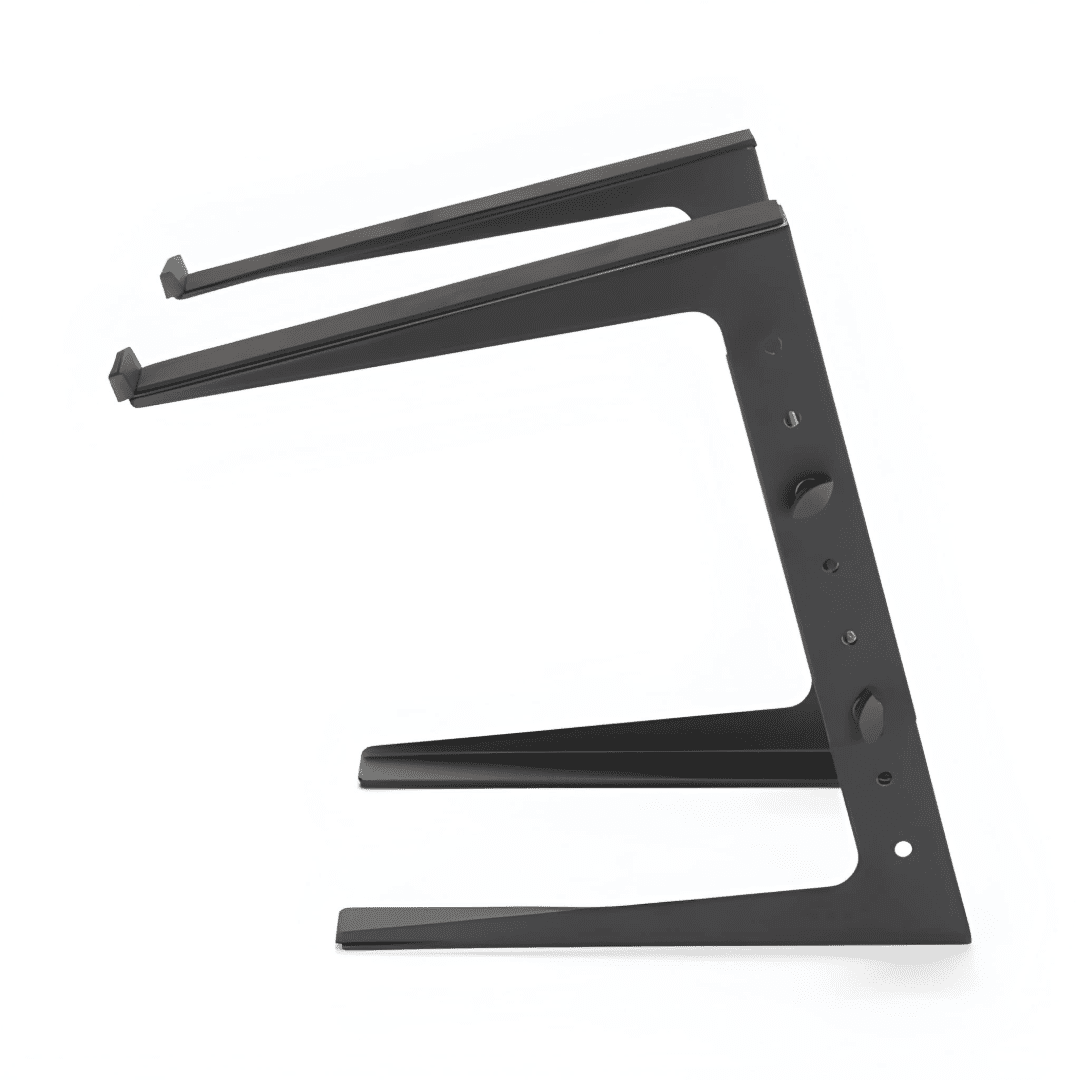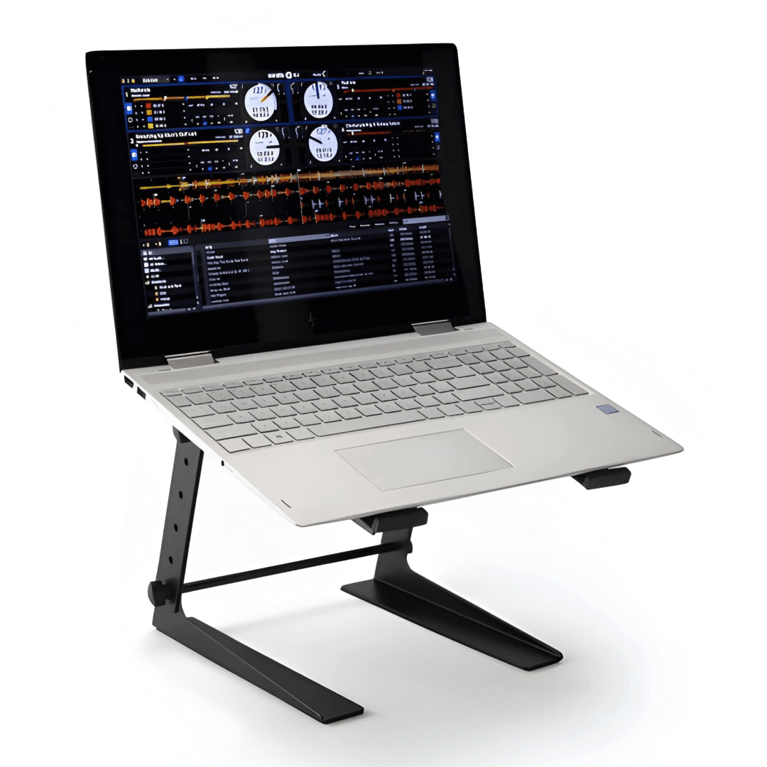 Add a second tier to a workstation with our portable LPT5000 Laptop Stand. The base rests on flat surfaces and the unit adjusts in height to elevate a laptop or other device to a comfortable viewing and operating level. The raised platform is padded to maximize grip and protect gear from scratches.