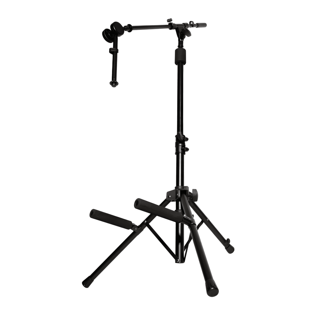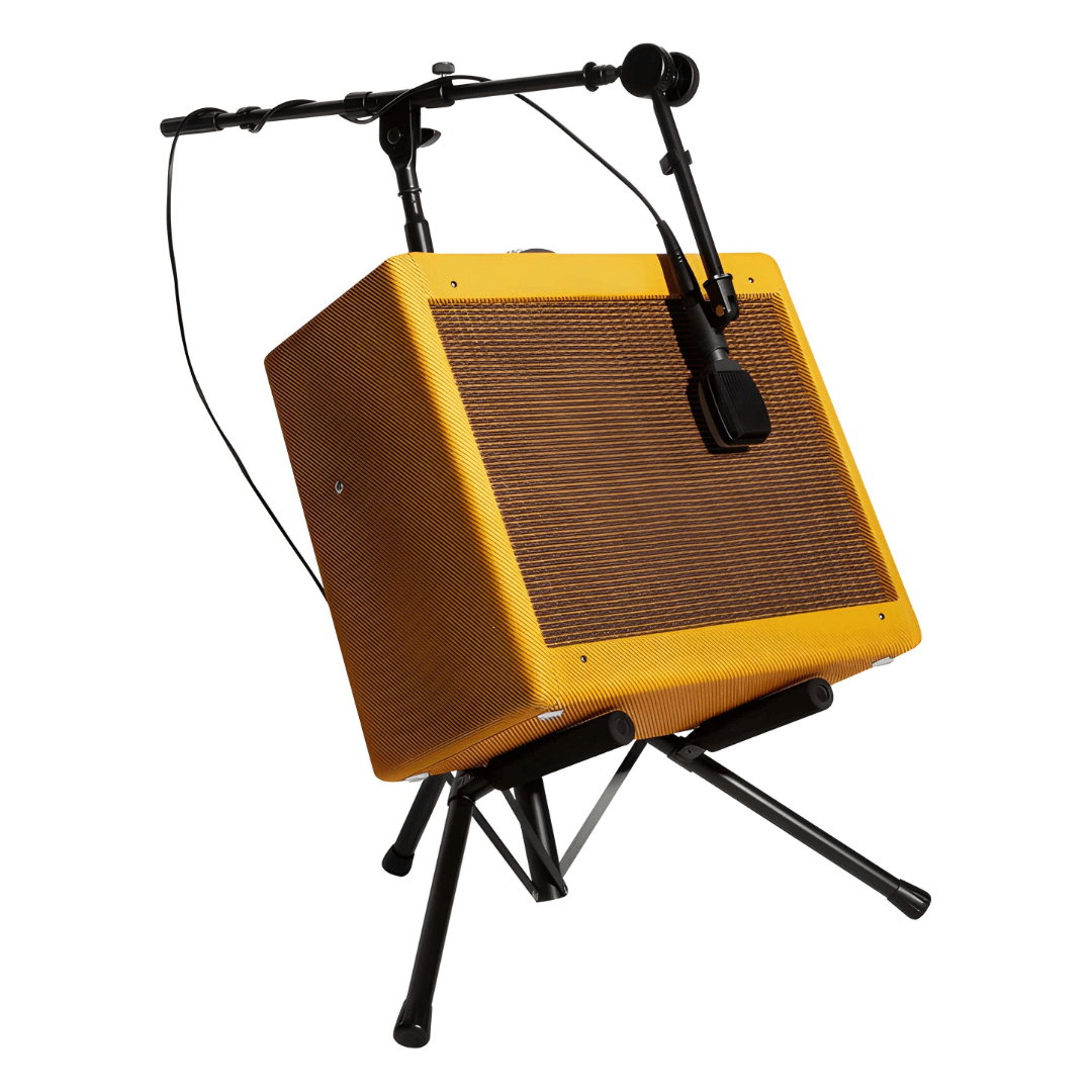 The RS7501 Tilt-Back Tripod Amp Stand's heavy-duty tripod base adjusts to accommodate various sizes of amps and features five tilt positions that enable you to dial in optimal speaker projection while reducing floor reflections. A convenient articulated boom arm mounts a mic in front of the amp and conserves floor space by eliminating the need for an extra mic stand. Padded contact points protect the amp from dings and scratches while rubber feet on the base prevent unwanted movement.