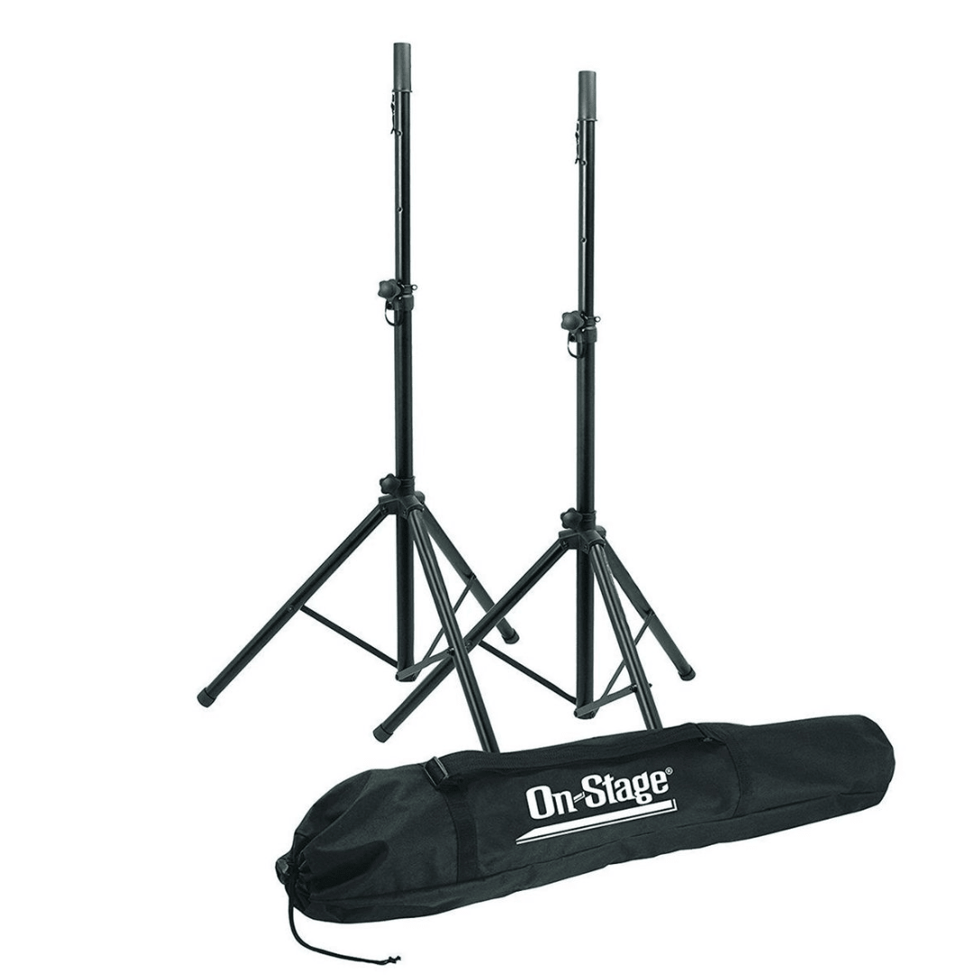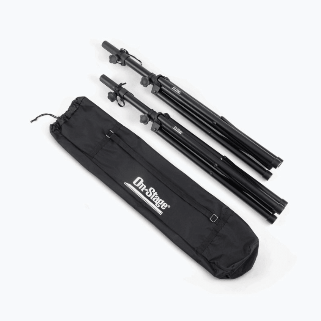 Our light-weight SSP7900 All-Aluminum Speaker Stand Pack comes with everything needed to support two speakers on individual stands. The stands feature versatile adaptable poles that support all standard speaker cabinet mounting sockets and their height adjusts to accommodate a variety of applications. Heavy-duty construction, braced bases, and nonslip feet work together to deliver exceptional stability and load balance even on irregular surfaces. The durable black finish preserves the professional appearance of any space. For convenient storage and ergonomic transportation, the tripod bases fold flat and all the components fit into an included carrying bag with an ergonomic shoulder strap.