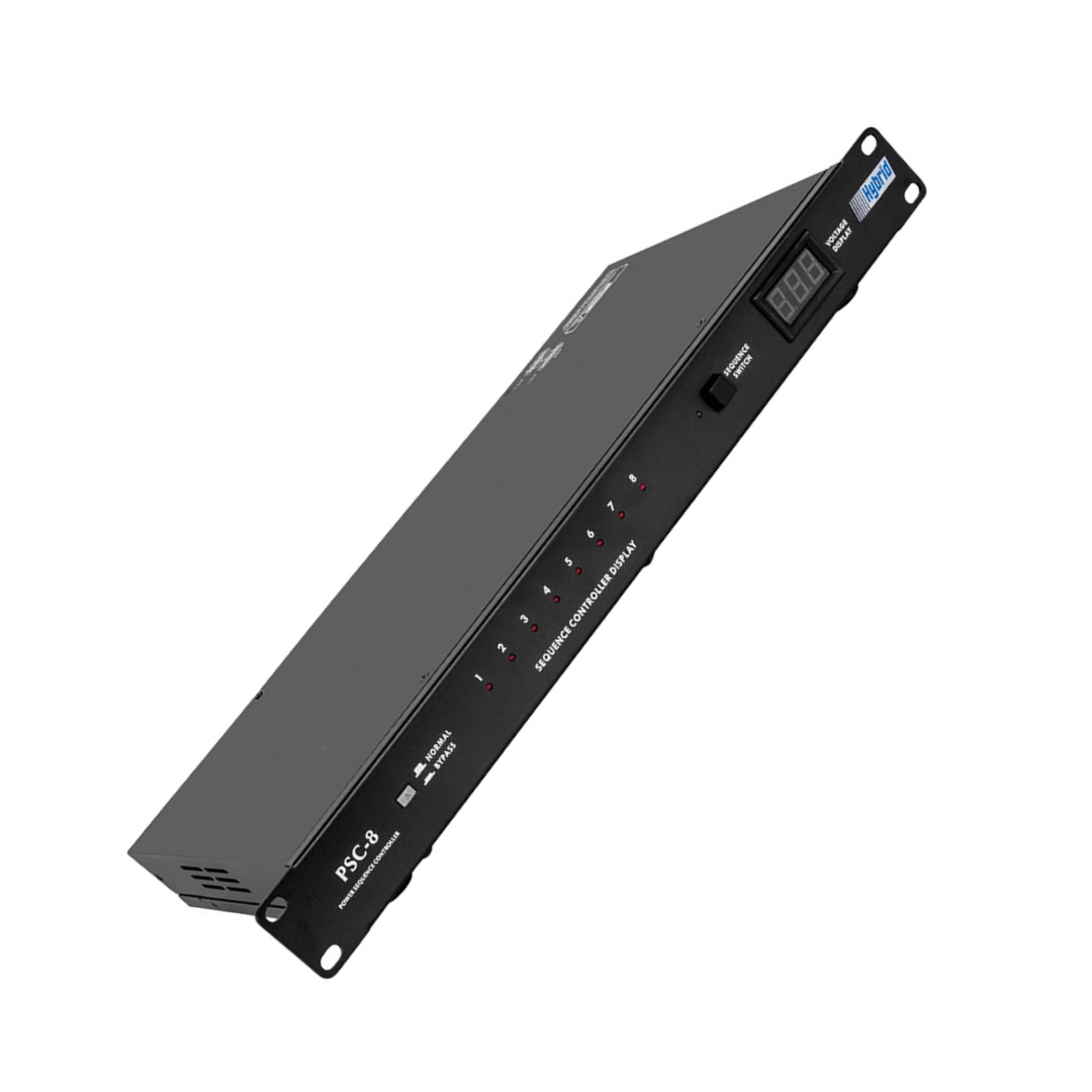 The Hybrid PSC-8 is an 8-way mains power sequencer. The PSC-8 is an important tool when using multiple amplifiers and processors within a system that is often forgotten or ignored until failure occurs.
