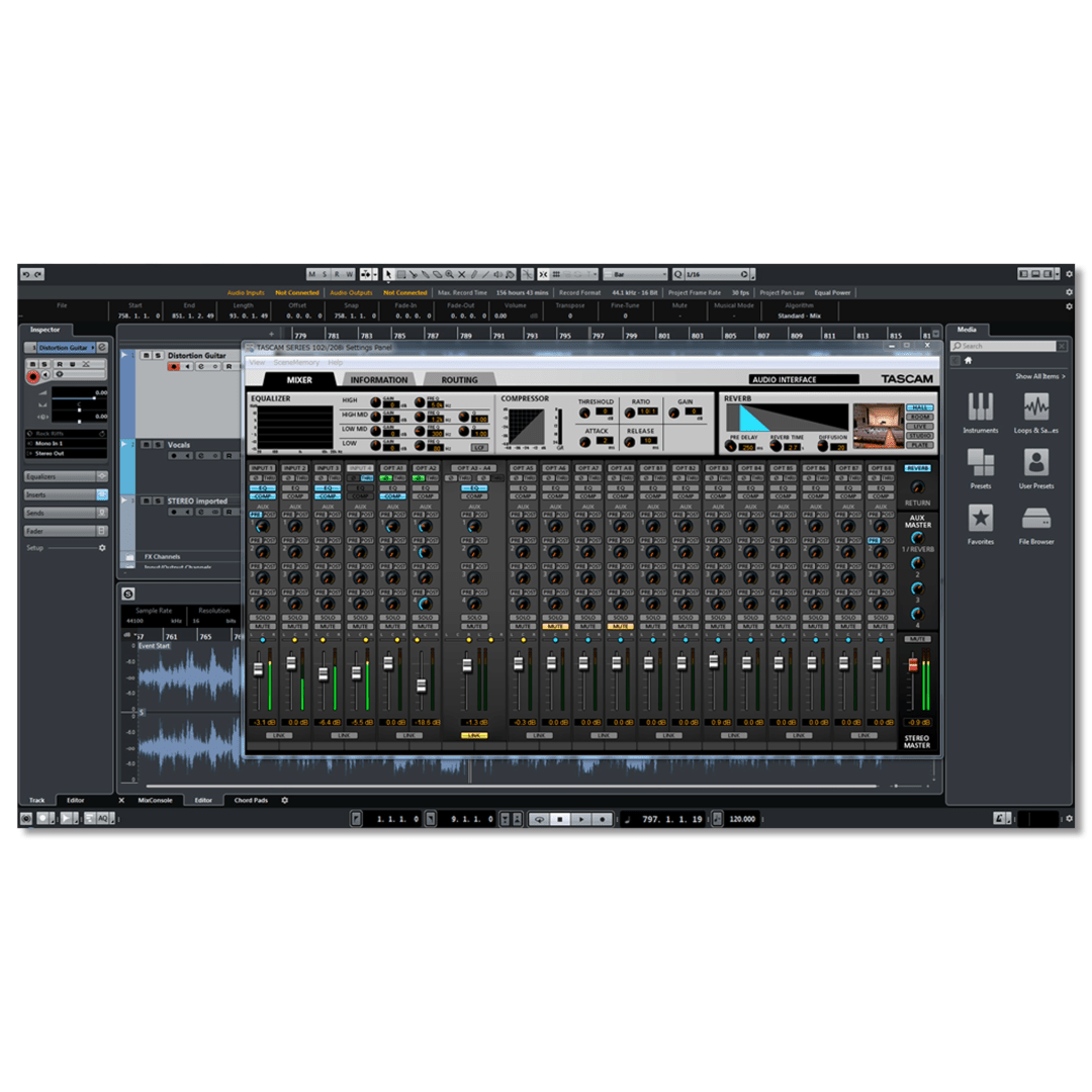 The new TASCAM SERIES audio interface family provides professional quality. Expandability, both internal and bundled effects processing, internal mixing, external software control, and more for studio, home, and live recording. With a new look, including an angled tabletop design and large, easy-to-grab knobs, TASCAM sets a new standard for mid-grade audio interfaces.