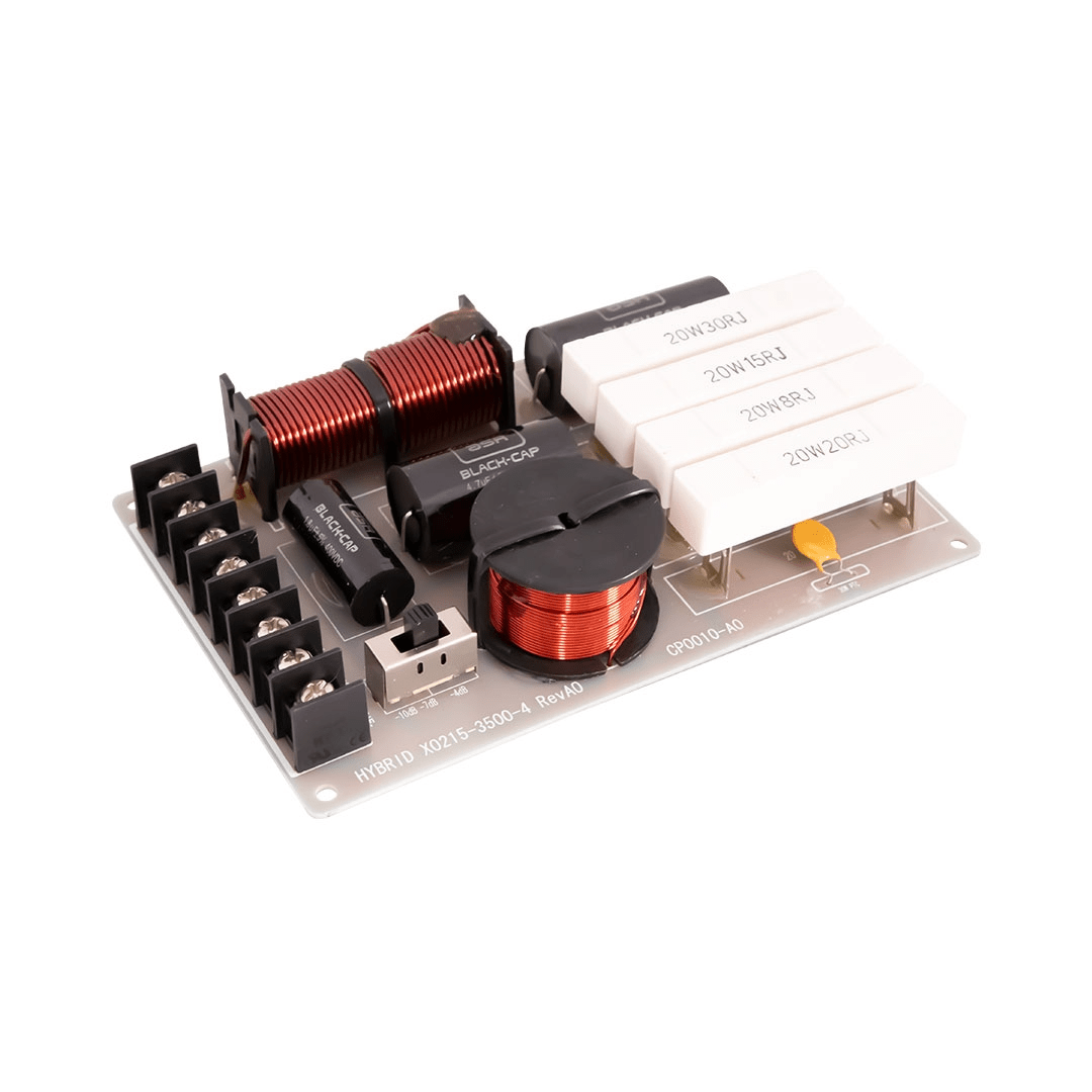 The Hybrid+ XO215-3500 is a universal, DIY, 2-way passive crossover suitable for enclosure design enthusiasts and it can be used as a replacement crossover for most dual woofer 2-way speaker cabinets, ranging in size from 6 to 15 .