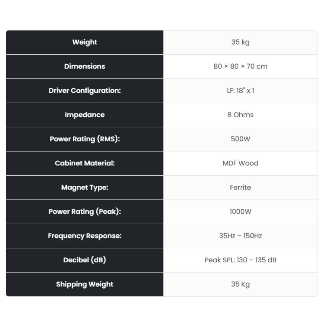 With a powerful 18″ driver housed in a sturdy, ported enclosure, the IM-618 offers tight, low-end response and high SPL output, making it a reliable choice for both mobile sound systems and permanent installations.