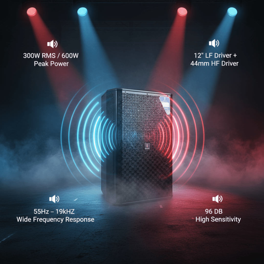 The Imix IM-712 is a compact, high-performance 12″ full-range loudspeaker designed to deliver clear, detailed sound for a wide variety of audio applications.