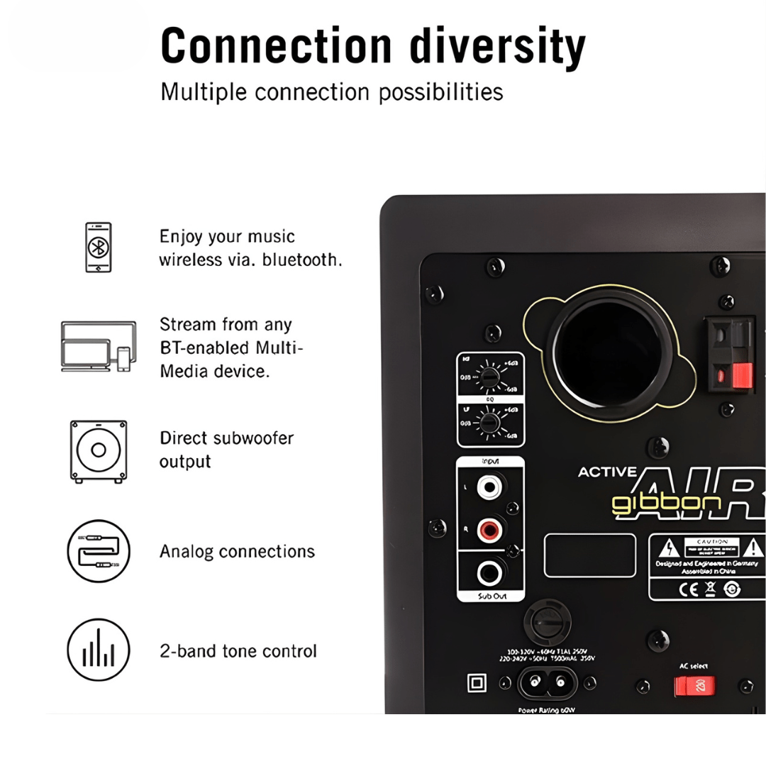 Optimized for plug-and-play efficiency, the Gibbon Air platform integrates Bluetooth connectivity, multiple input formats, and dedicated output pathways—future-proofing your creative pipeline while enabling frictionless switching between reference sources.