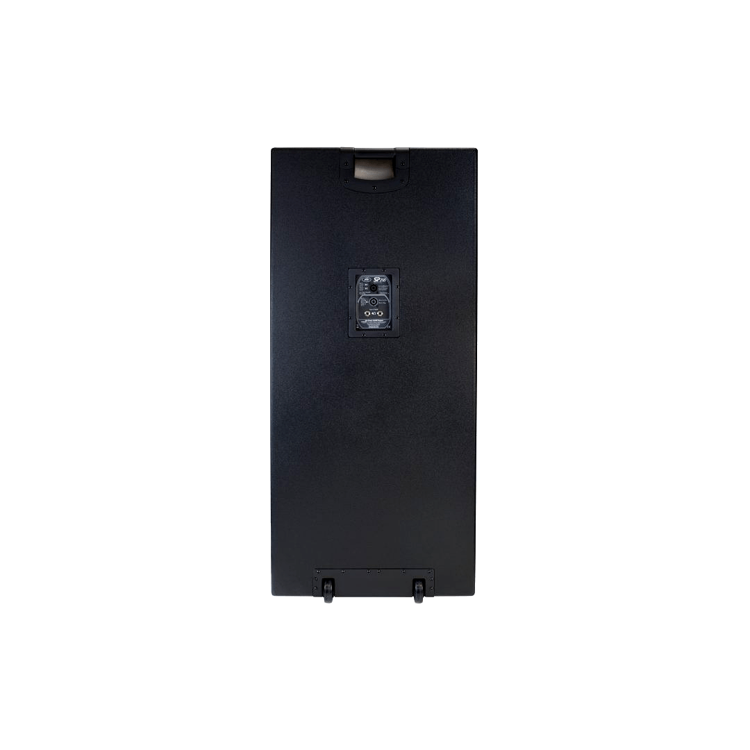 The SP® 218 subwoofer features two 18″ 1808-8 AL CP Pro Rider® woofer. Power handling is 2400 Watts program and 4800 Watts peak, with low frequency response down to 41 Hz. Inputs include one four-pin twist lock connector and two 1/4″ phone jacks. Threaded pole for mount is included