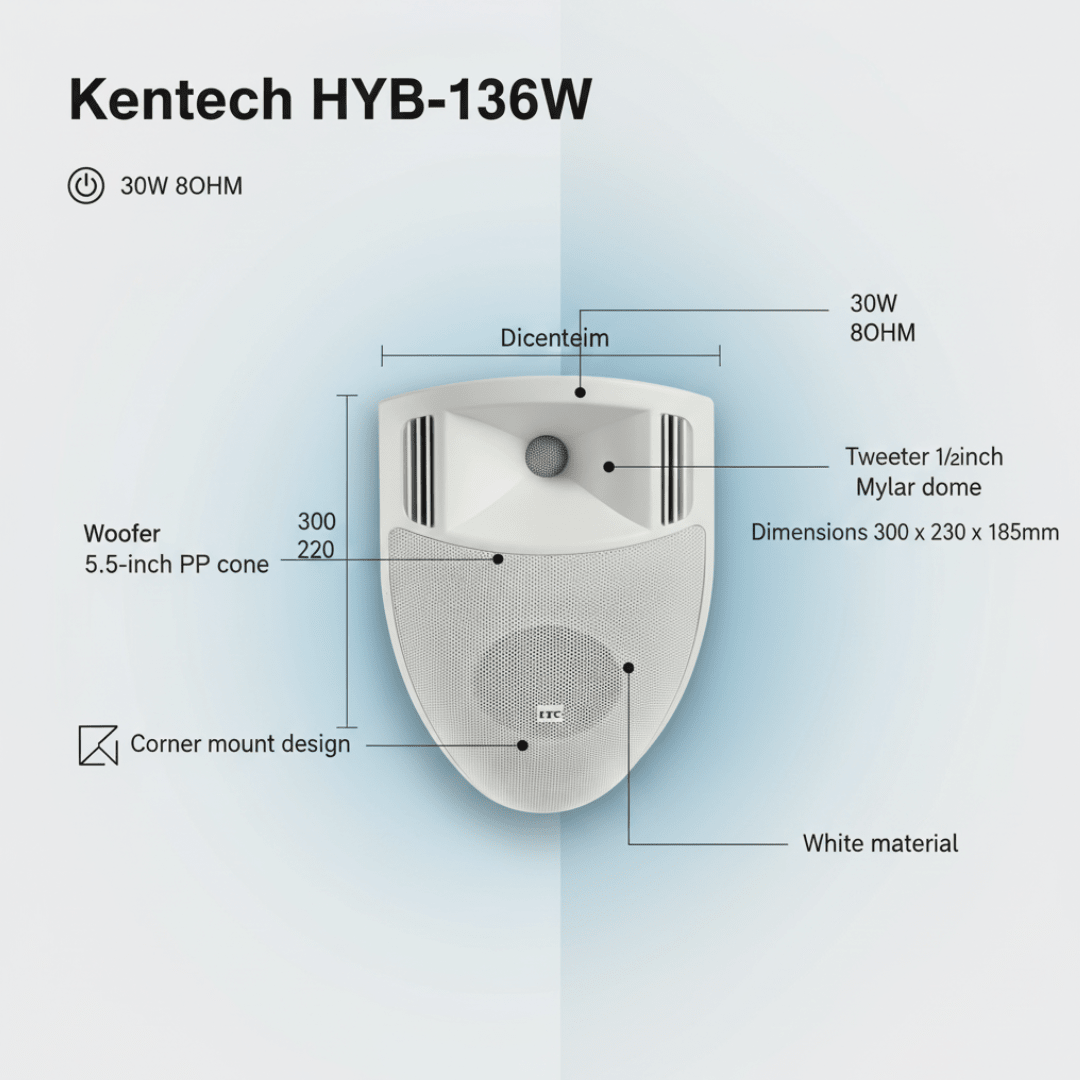 Kentech HYB-136W Speaker 30W 8OHM 5.25" Corner Mount White Single