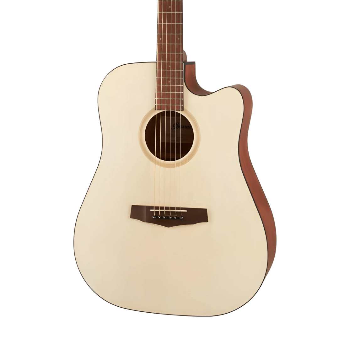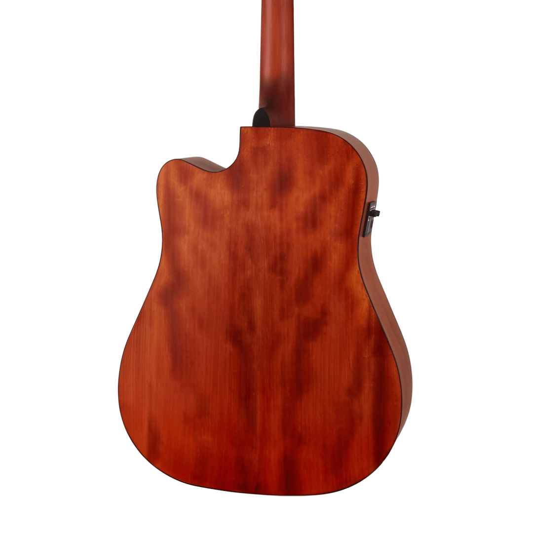 The Okoume back and sides generate a woody, warm tone when the guitar is played softly or finger-picked and provide punchy high-mids with a clear projection when strummed.