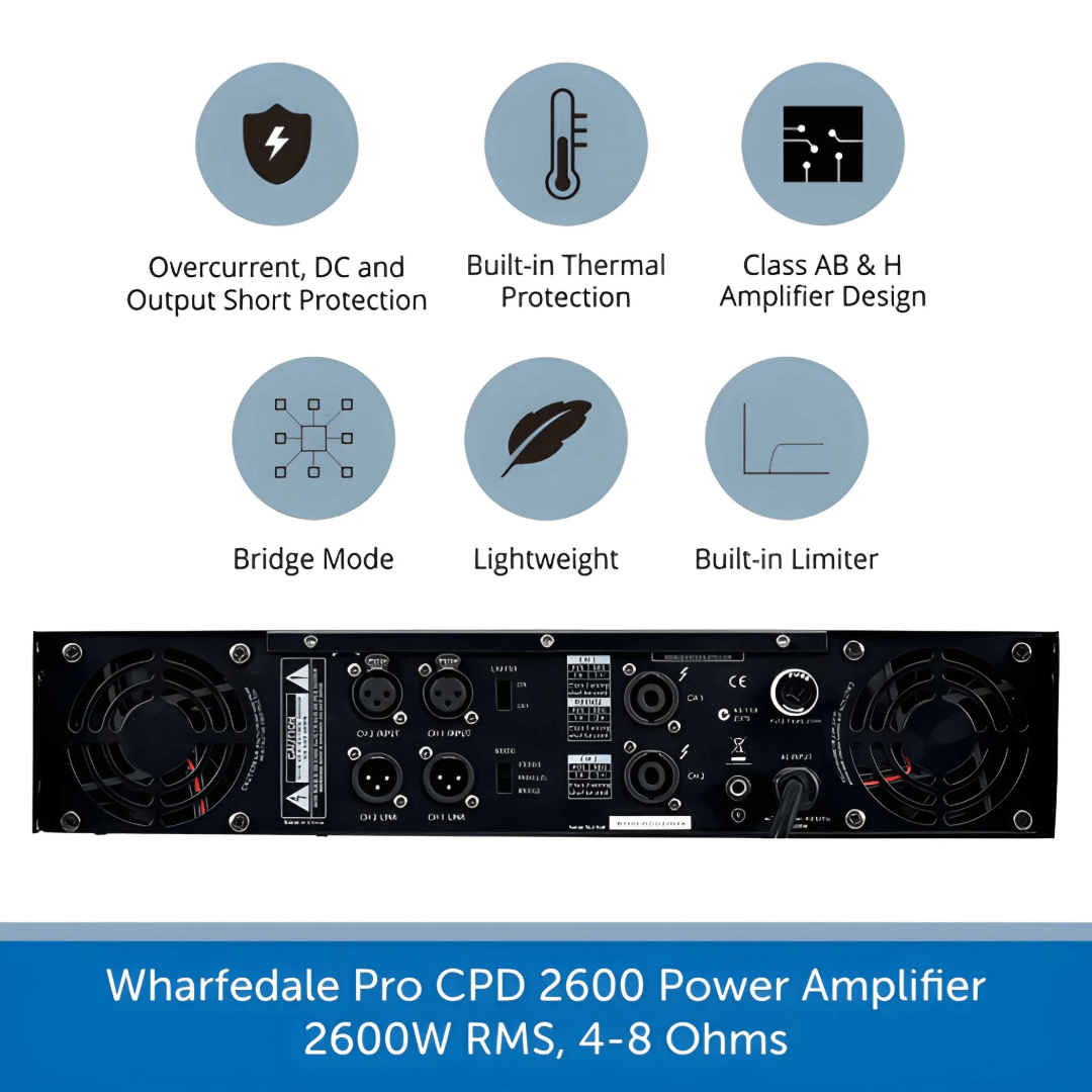 The CPD2600 is part of Wharfedale Pro’s latest line of professional power amplifiers driving earth shaking audio from the front of your venue, all the way to the back.