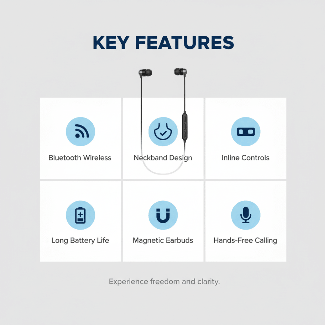 • Ergonomic Neckband Design: Crafted for comfortable wear, allowing the earphones to rest securely around your neck when not in use.