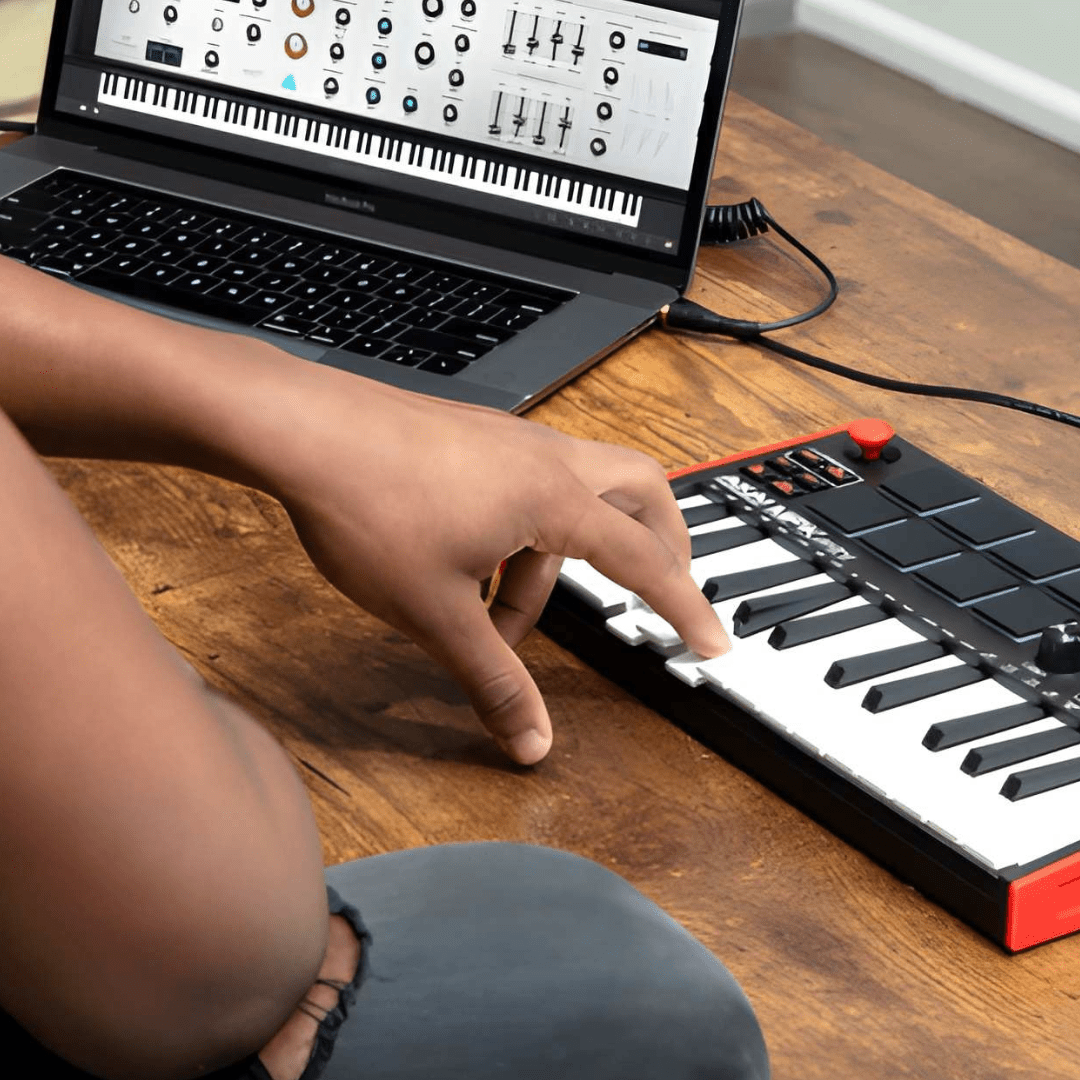 ULTIMATE PERFORMER New to MPK mini is a reimagined Gen 2 enhanced dynamic keybed, delivering a piano key performance fit for the world's finest keyboard players. From grand pianos to searing synth leads and lush electric pianos, this keybed guarantees to get the best out of any playing style and virtual instrument. Music producer playing MPK Mini keys on laptop with MPC Beats Music producer playing MPC pads on MPK Mini