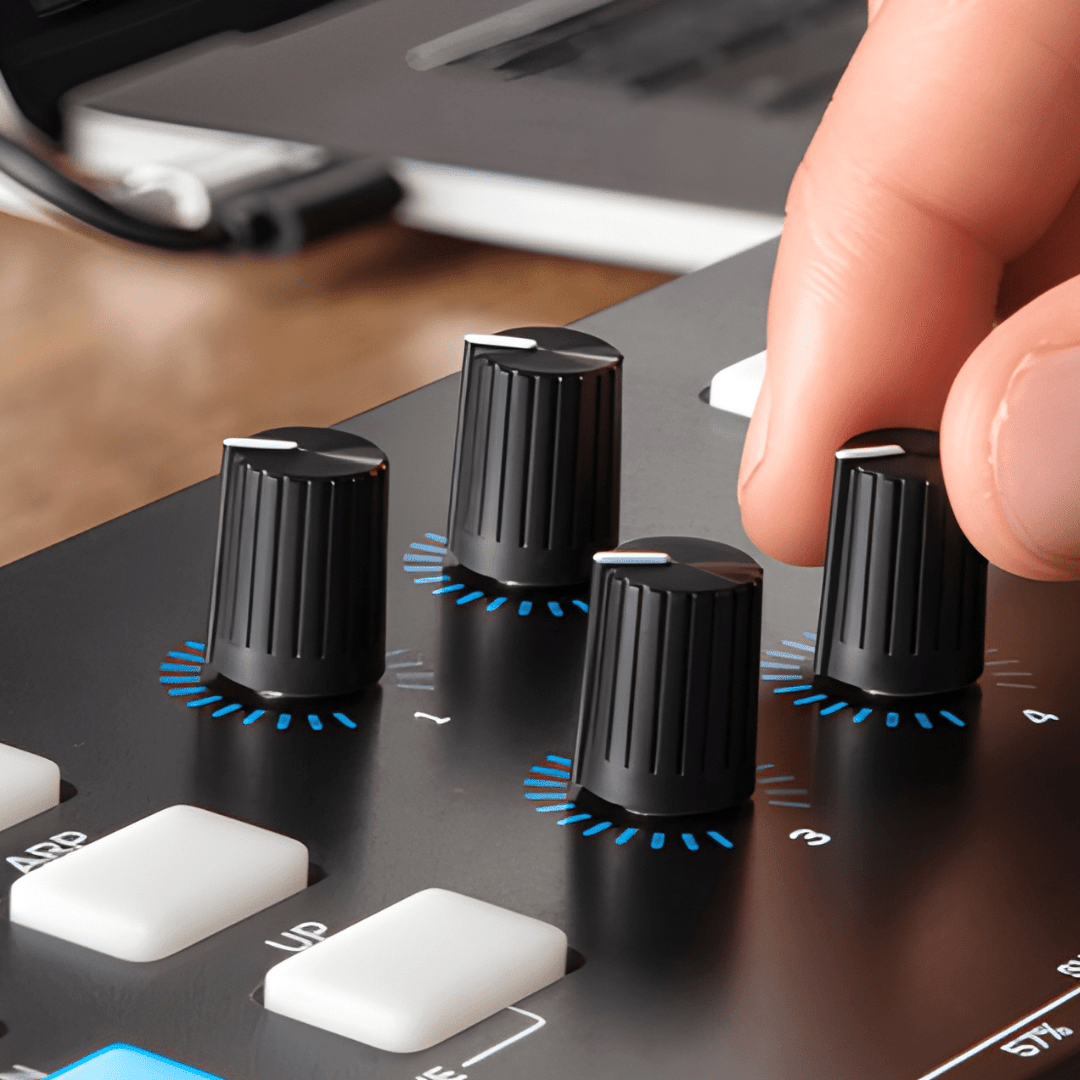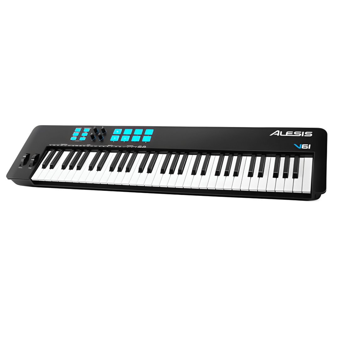 Introducing the Alesis V61 MKII, a 61-key USB MIDI keyboard and music production controller. This versatile MIDI controller comes equipped with everything needed to take your ideas from concept to final production - synth-action keys that are springy and responsive, velocity-sensitive pads, assignable knobs, Octave and Transpose buttons for accessing the full piano range, Pitch Bend and Modulation wheels for added expression, and an Arpeggiator with 6 modes for creating unique melodies and inspiring creativity. There’s also a sustain pedal input for truly expressive control. Plug in the V61 MKII, and instantly turn your PC or Mac into a full-featured music production studio.