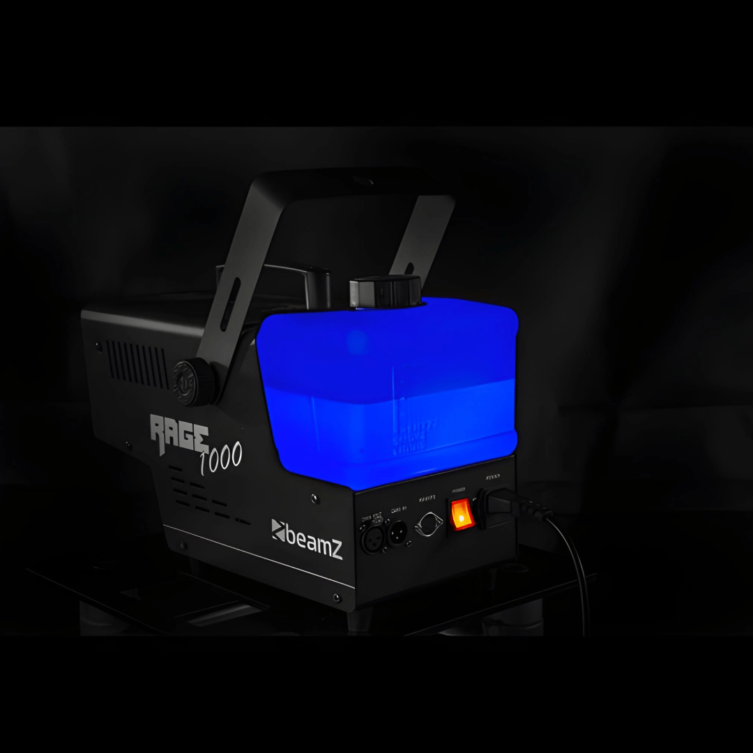 The Rage1000LED is a stylish 1000W DMX smoke machine that provides a great fog effect in combination with 6x 9W high power 3-in-1 (RGB) LEDs for endless colour capabilities. This smoke machine has a sturdy metal housing and a tank capacity of 2 liters! Can be used with the included wired remote control (3m cable) as well as with the wireless remote control. Suitable for small to medium size venues. LED illuminated reservoir makes it easy to check fog fluid level.