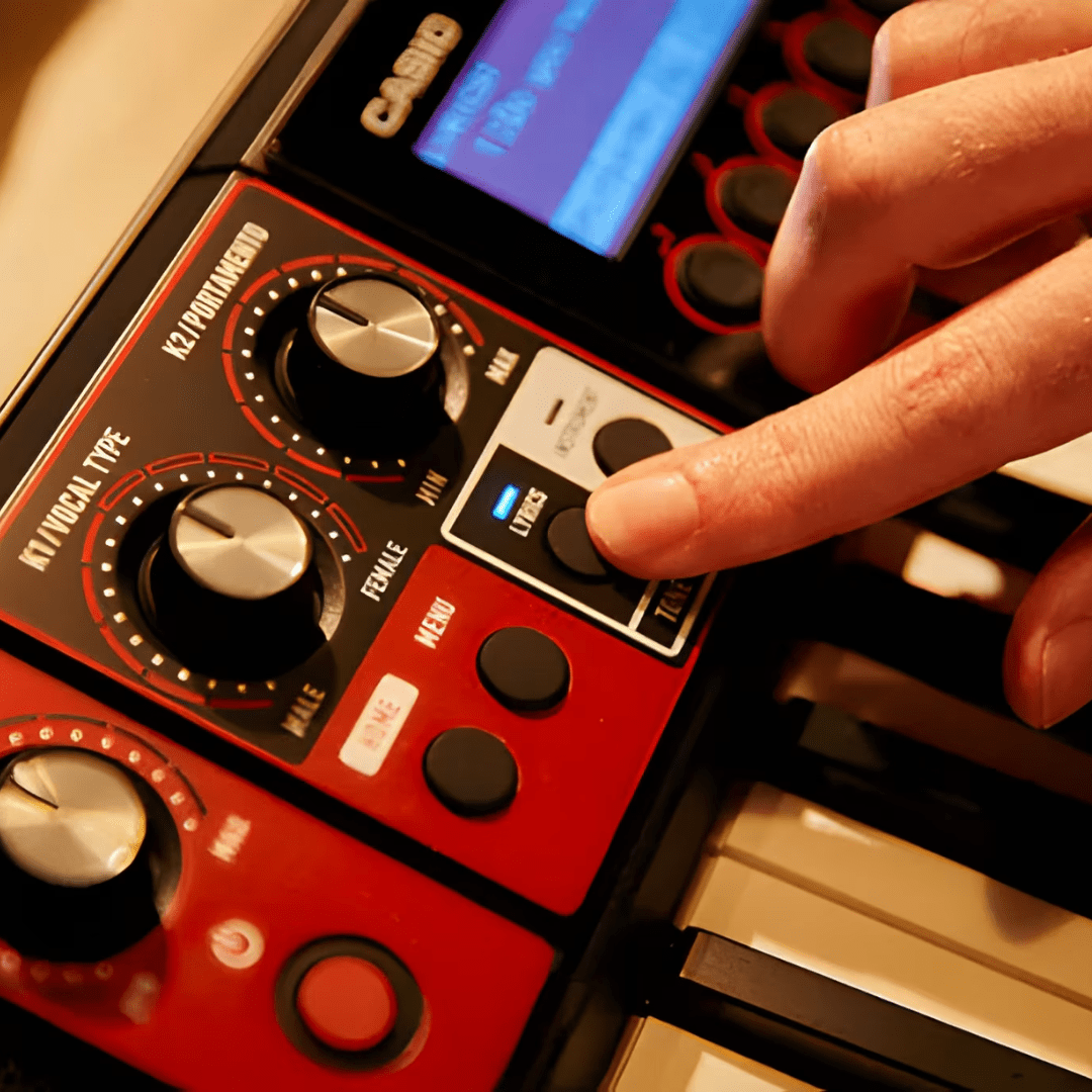 At the heart of the CT-S1000V is Casio's unique Vocal Synthesis technology. Smoothly sung vocal lines can be produced from any lyrics input with no further special settings required. You can even play harmonies to recreate the sound of a choral group. Experience a completely new kind of musical performance not possible with conventional sound sources. Two modes are available: Phrase Mode and Note Mode. Phrase mode is recommended for experimentation and improvisation when developing ideas. The lyrics are sung in order as you play for a very natural playing experience. In Note mode, the lyrics advance one syllable at a time as you press keys on the keyboard.