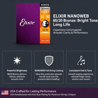 Engineered for creators who demand long-haul performance, these USA-crafted Elixir 11027 Nanoweb 80/20 Bronze strings unlock a bright, articulate voice while maintaining a consistently smooth playing experience.